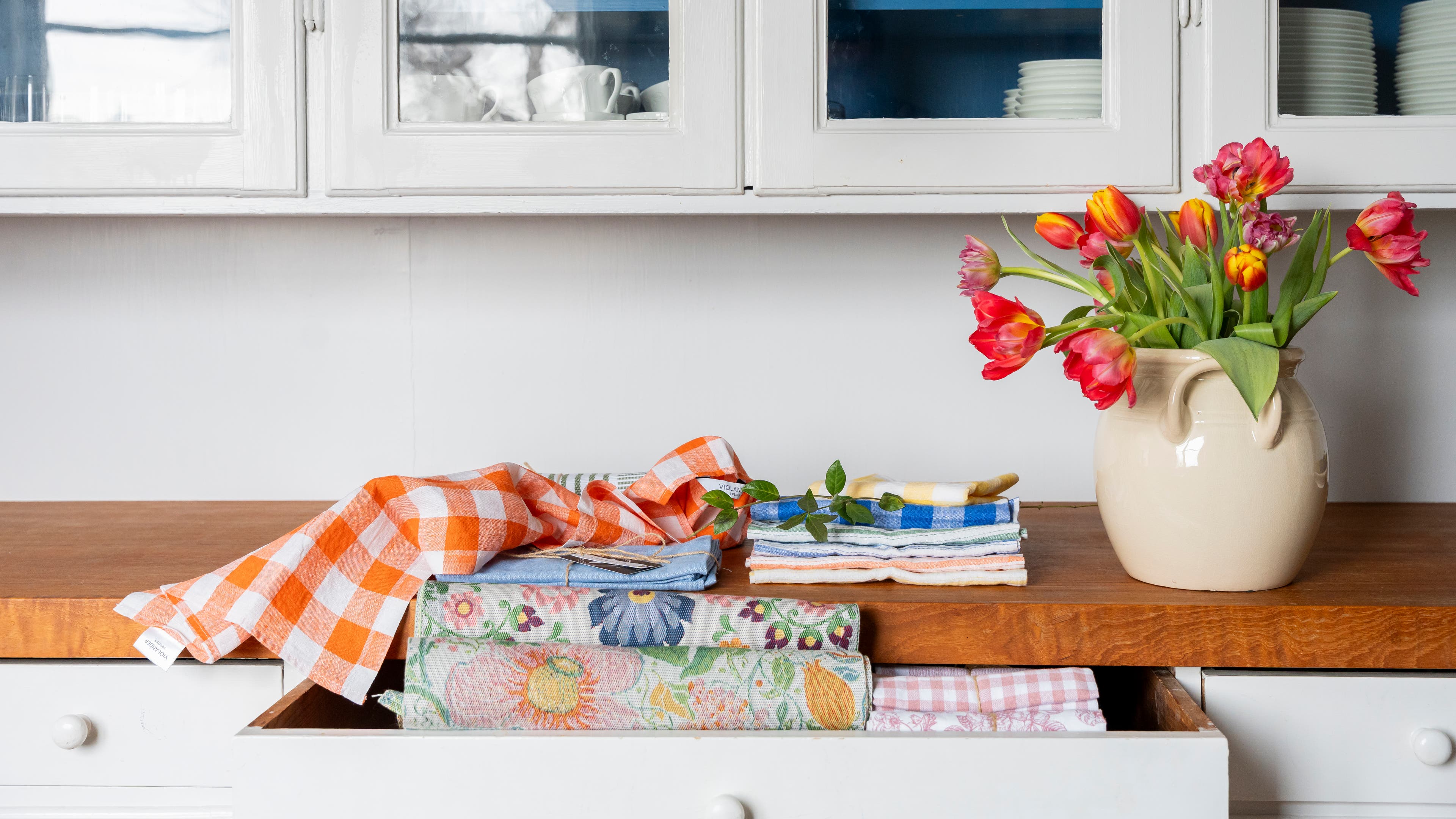 Textilier för hemmet med färger hämtade från Västerbottens folkdräkt. Det randiga mönstret har sitt ursprung i ett livstycke från 1960-talet och återkommer i kuddfodral, löpare och andra vardagsnära textilier.