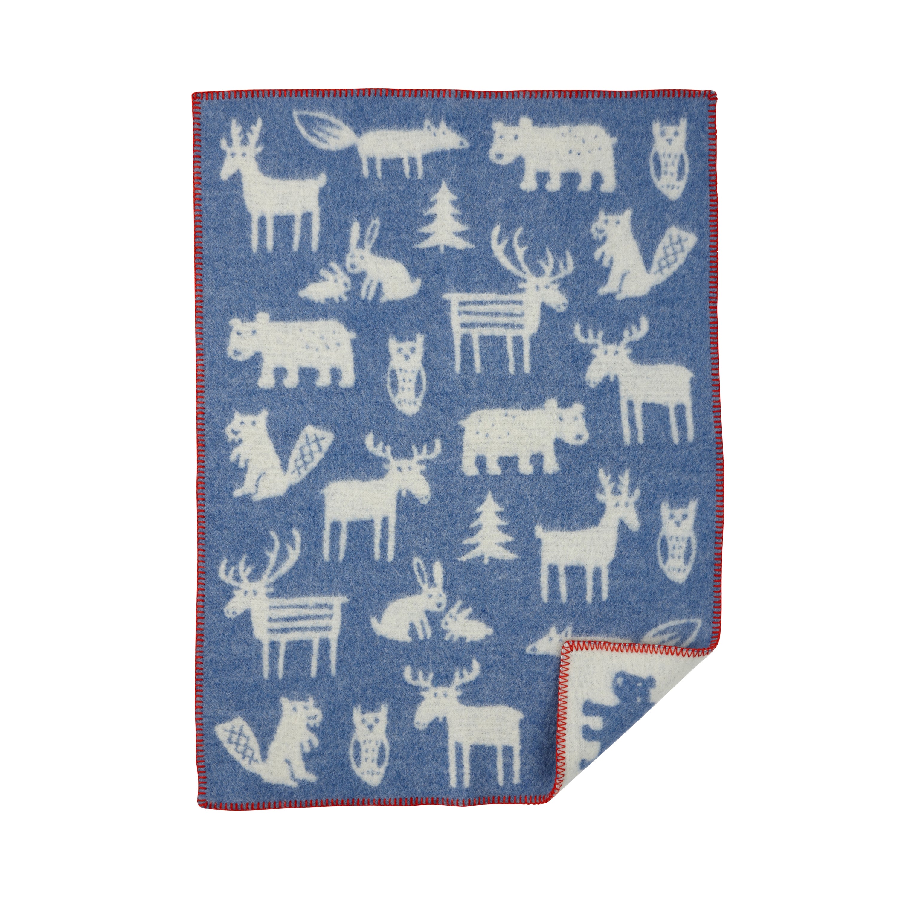 Ljuvlig barnpläd från Klippans Yllefabrik, designad av Bengt & Lotta och tillverkad i 100 % ekologisk lammull. Den ekologiska lammullen är helt fri från pesticider, och inga kemikalier eller antibiotika har använts vid uppfödningen av lammen. Filten har ett lekfullt mönster inspirerat av skogens vänner och är en underbar filt att pryda spjälsängen med eller ha i barnvagnen under promenader.
