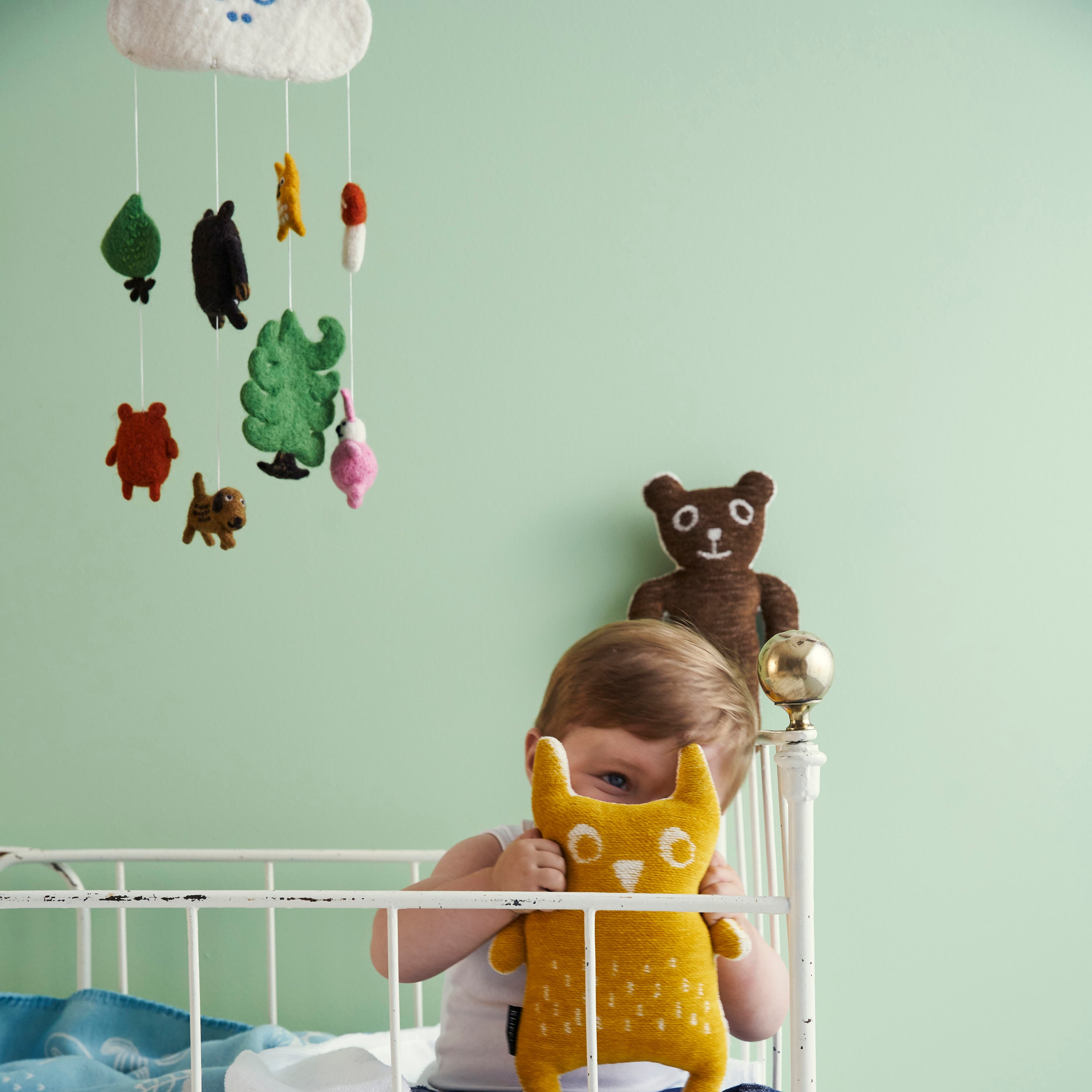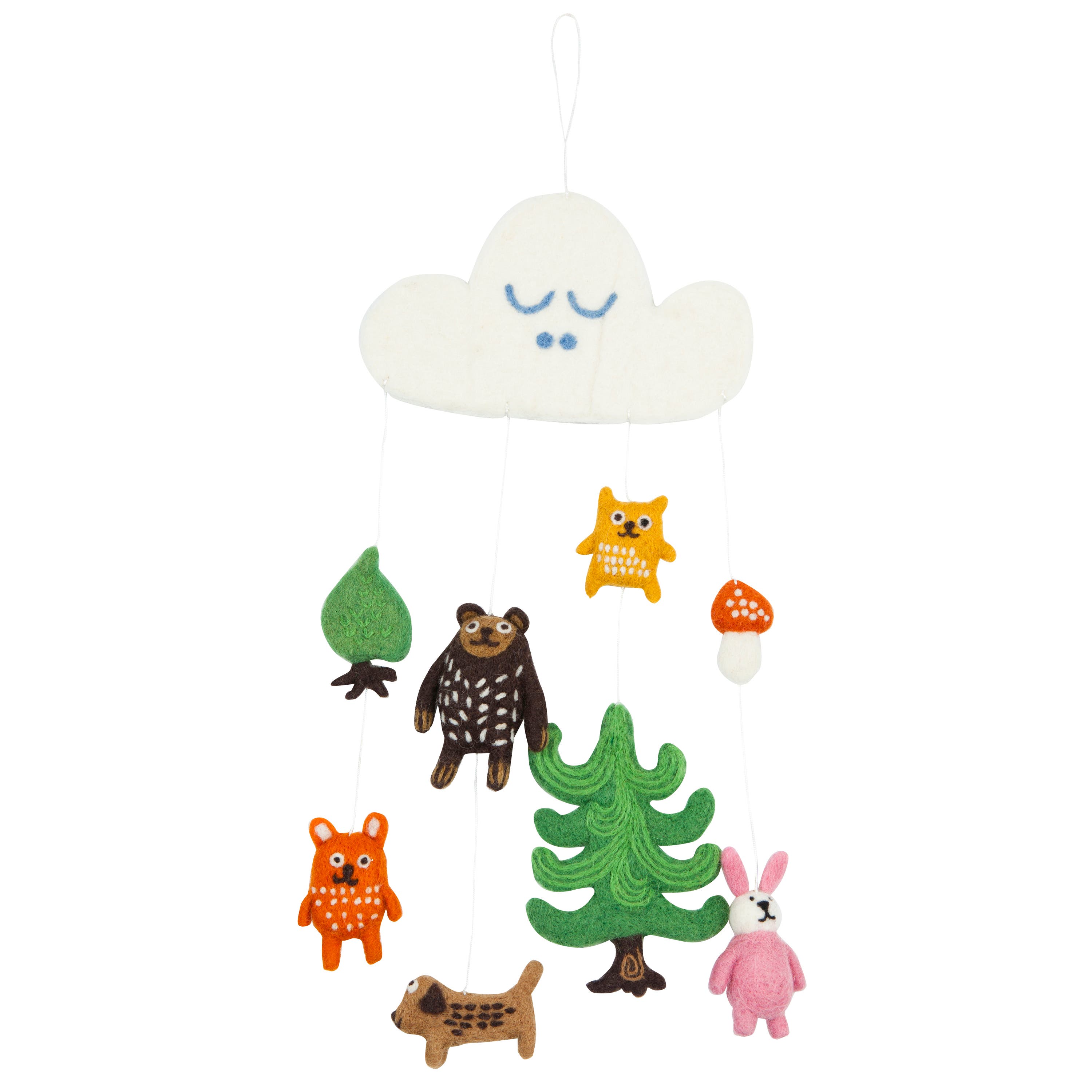 Handfiltad och vacker mobil från Klippan Yllefabrik i 100% ull. En färgglad och lekfull dekoration att hänga över spjälsängen i barnrummet, som är kul för barnet att titta på.