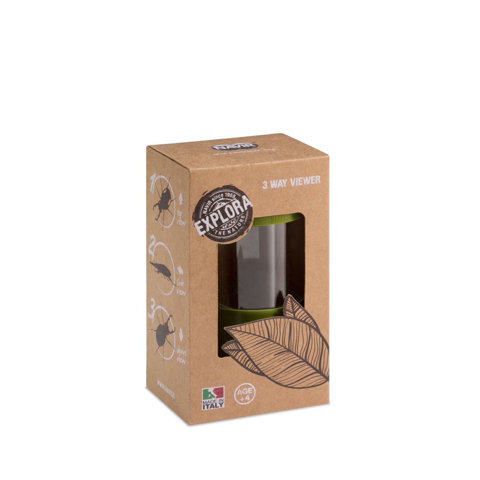 Smart förstoringsburk med tre observationsvinklar som låter små upptäckare se detaljer från ovan, från sidan och underifrån. Perfekt för att kika närmare på insekter, blad och annat intressant i naturen.