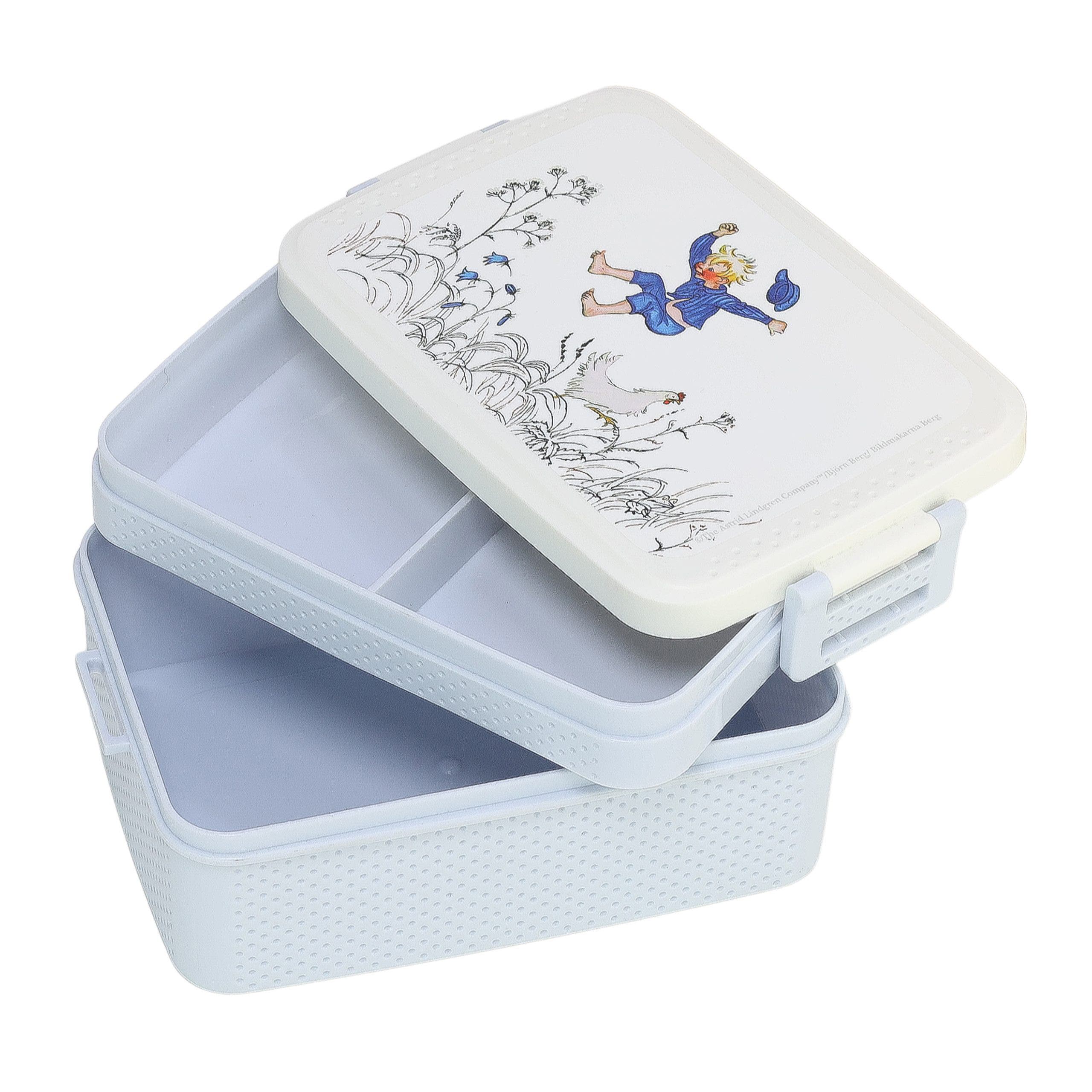 Praktisk och söt lunchlåda med motiv från Emil i Lönneberga. Med en avtagbar mellanbricka med två fack och ett justerbart lock är den perfekt för matsäck, picknick eller att organisera småsaker som pärlor och pyssel. Tillverkad i tålig och giftfri polypropen som är säker att använda. Lådan tål mikrovågsugn (30 sekunder, 800W), diskmaskin (upp till 50 grader) och kan även frysas.