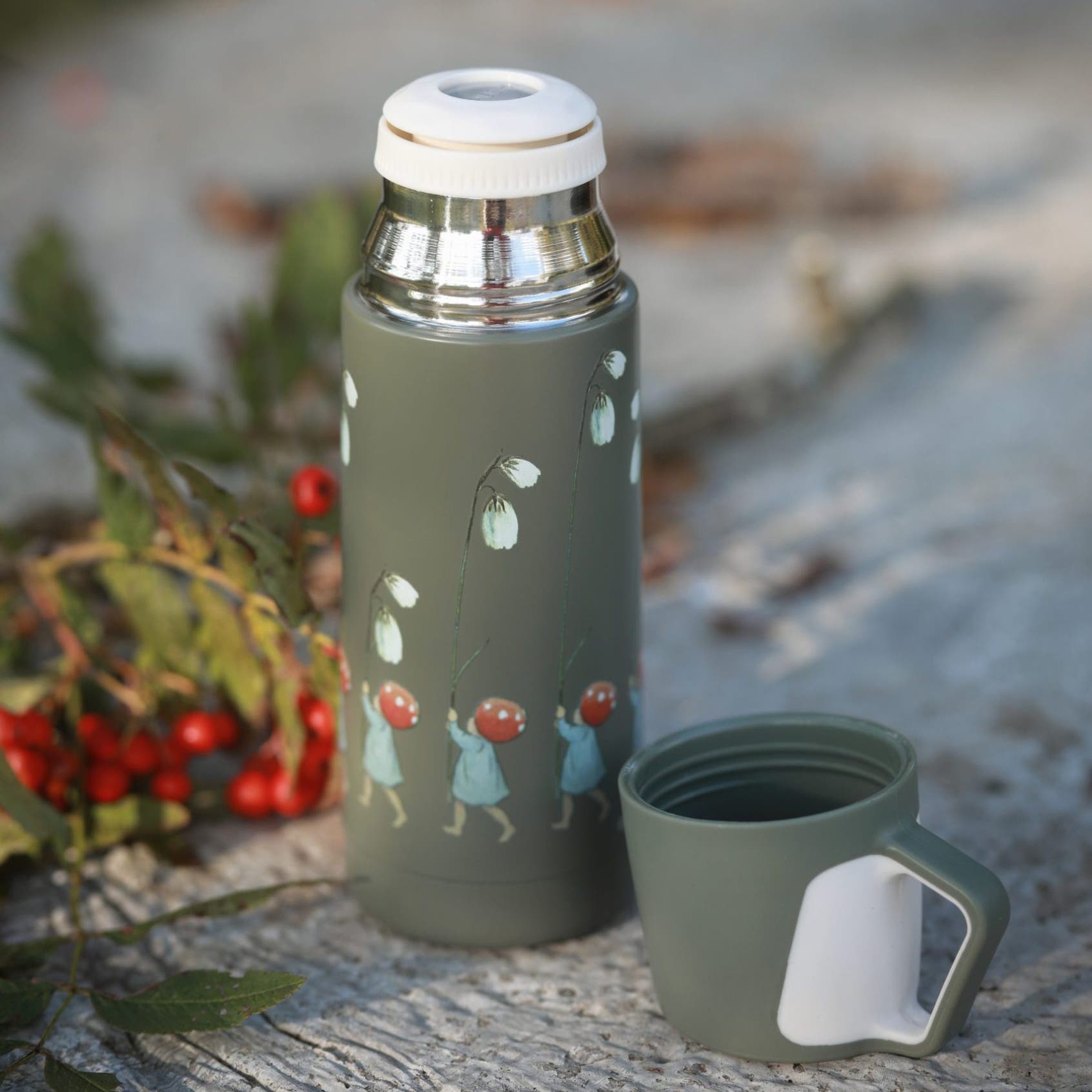 Termos i rostfritt stål med motiv från Elsa Beskows Tomtebobarnen. Den rymmer 350 ml och håller drycken varm eller kall i upp till 10 timmar. Perfekt för vinterutflykter och sommardagar på stranden. Den tillhörande muggen är i gummerad plast.
