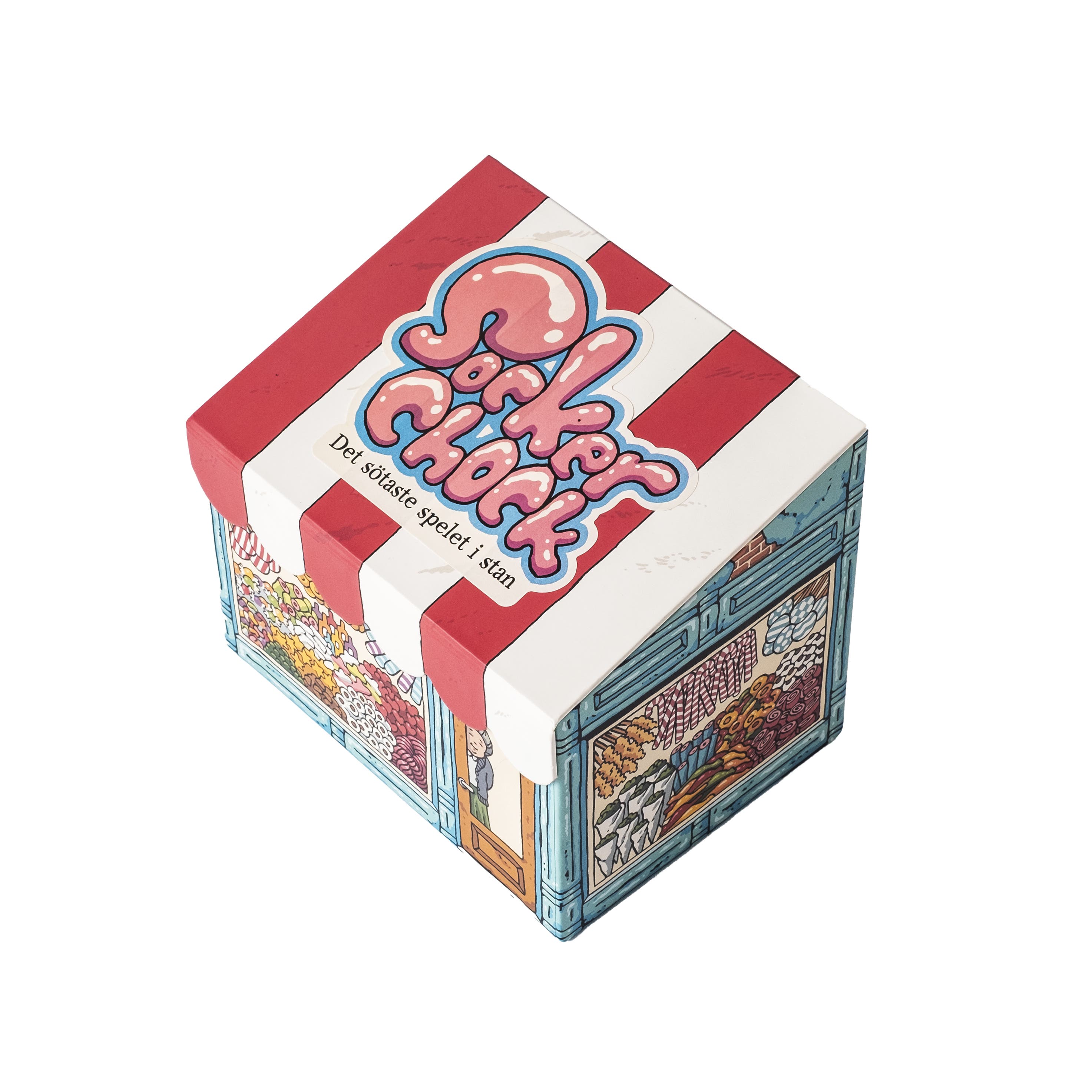 Sockerchock är ett strategiskt familjespel tryckt på FSC-märkt papper från ansvarsfullt skogsbruk och illustrerat av Augustprivinnande barnboksförfattaren Fabian Göranson. Målet är att skapa rader av godisbrickor genom att matcha sort eller smak. Spelet belönar både planering och flexibilitet - du måste balansera mellan att maximera dina poäng och blockera dina motståndare. Regnbågsrullarna ersätter valfri brick, perfekt i kniviga lägen!