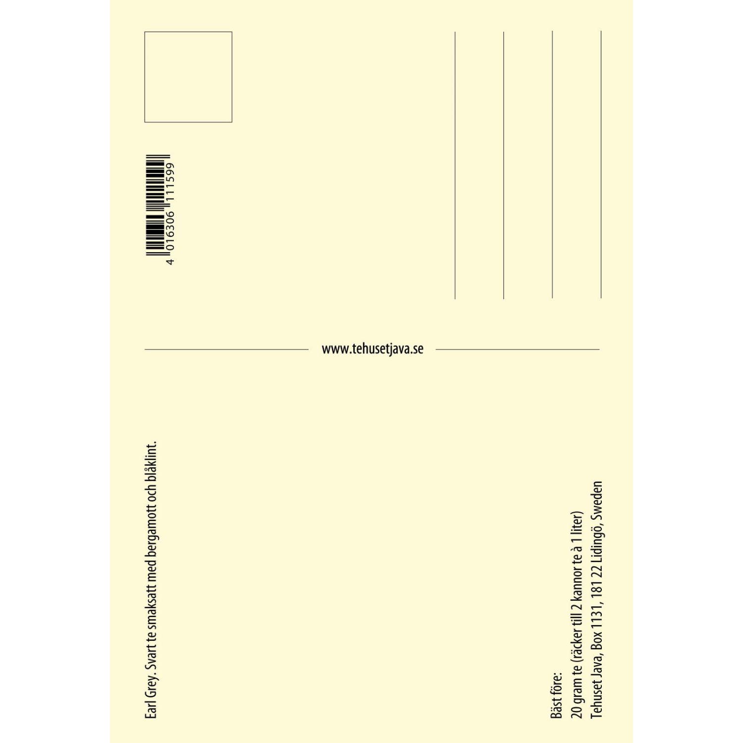 A postcard with a twist! This tea postcard contains 20 grams of loose tea – enough for about two teapots of delightful tea. Send it with a standard domestic stamp and let the recipient discover a cozy tea break tucked in with the mail.