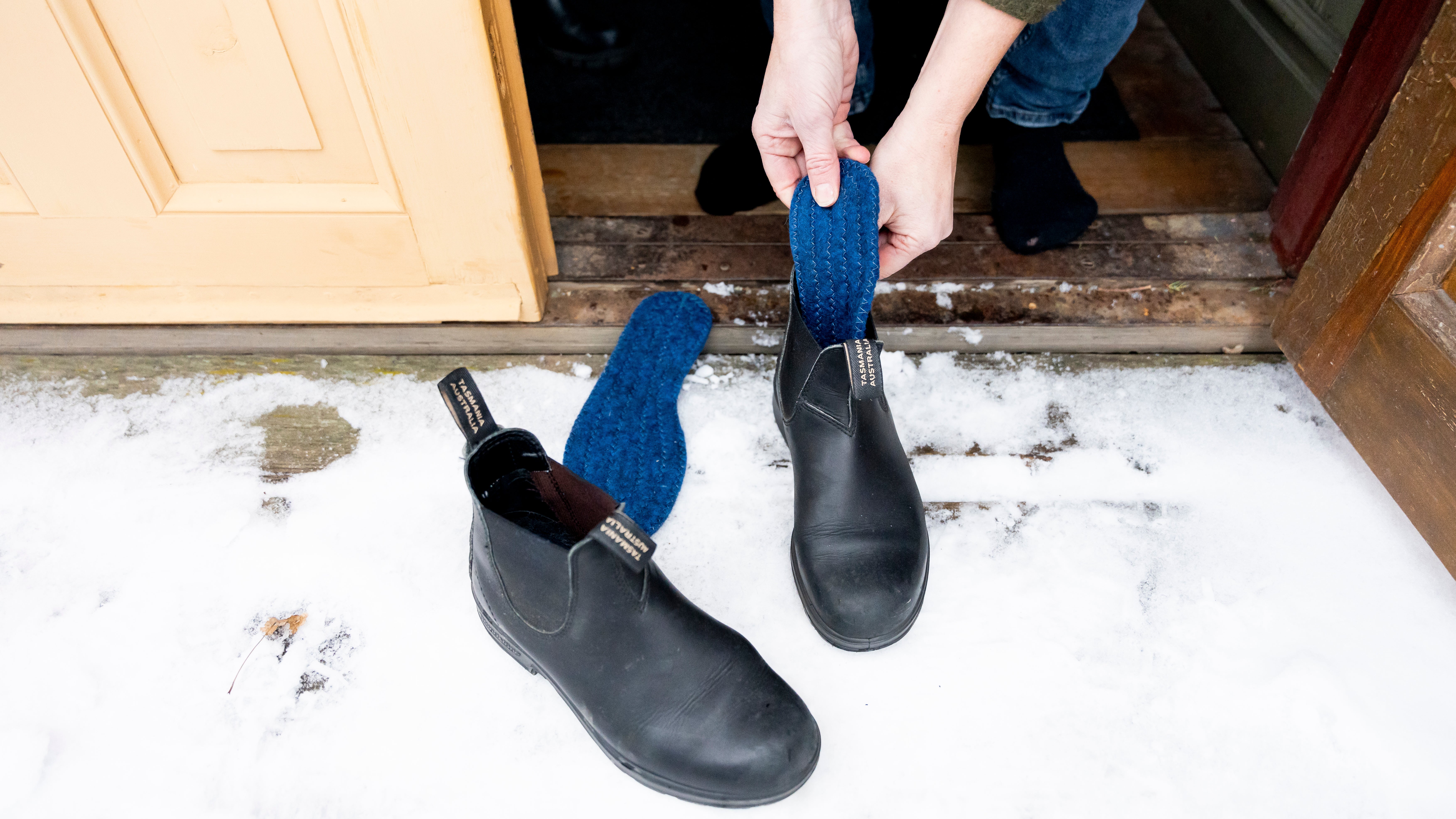 The products are designed in-house and made in small-scale production, with a focus on using resources carefully. The felted wool used in the insoles provides natural insulation and helps keep your feet warm in colder conditions.