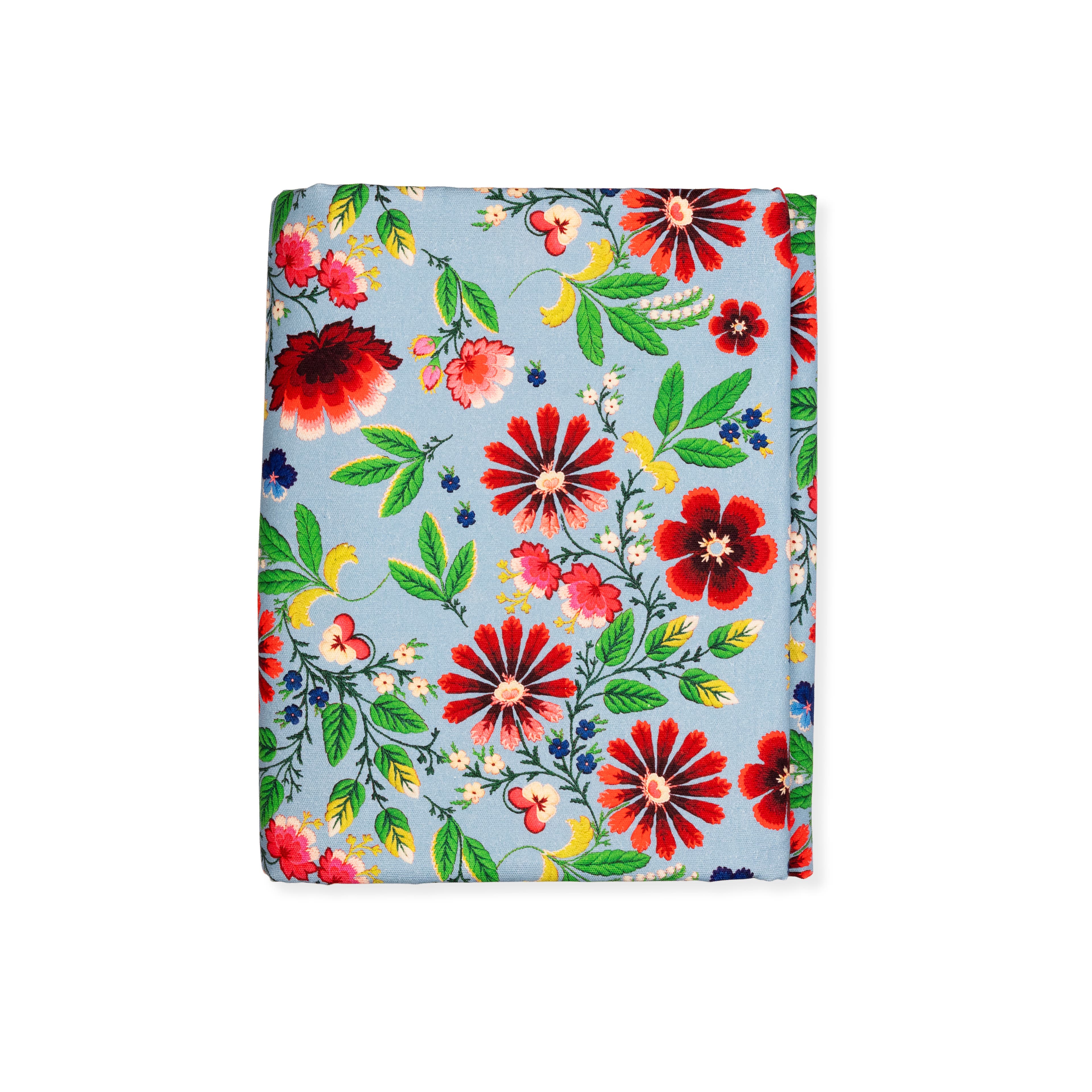 Dalafloda light blue kitchen towels, 50×30 cm, 2-pack, with a floral pattern inspired by the jacket of the Dalafloda folk costume, printed on 100% organic, GOTS-certified cotton. A stylish and practical addition to any kitchen.