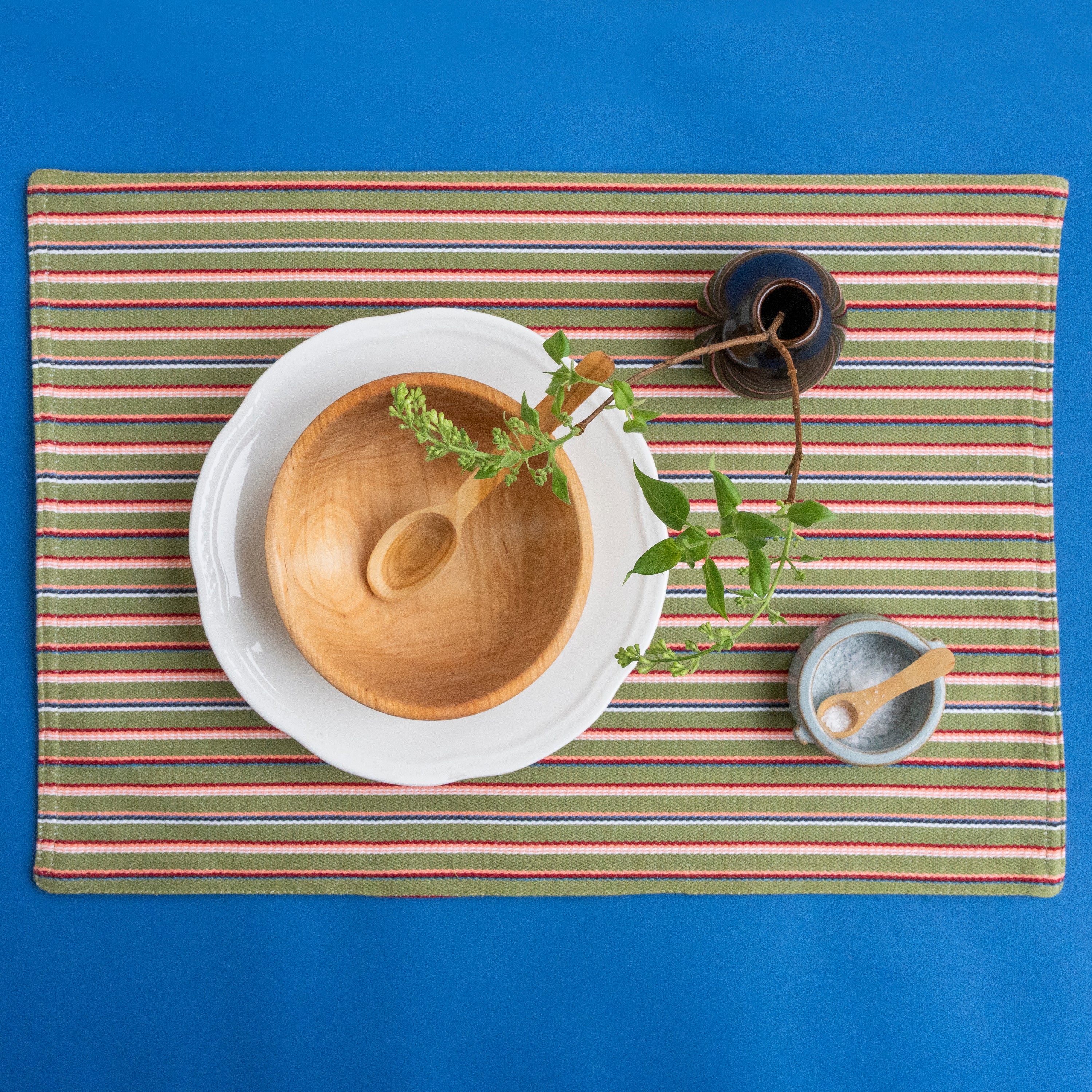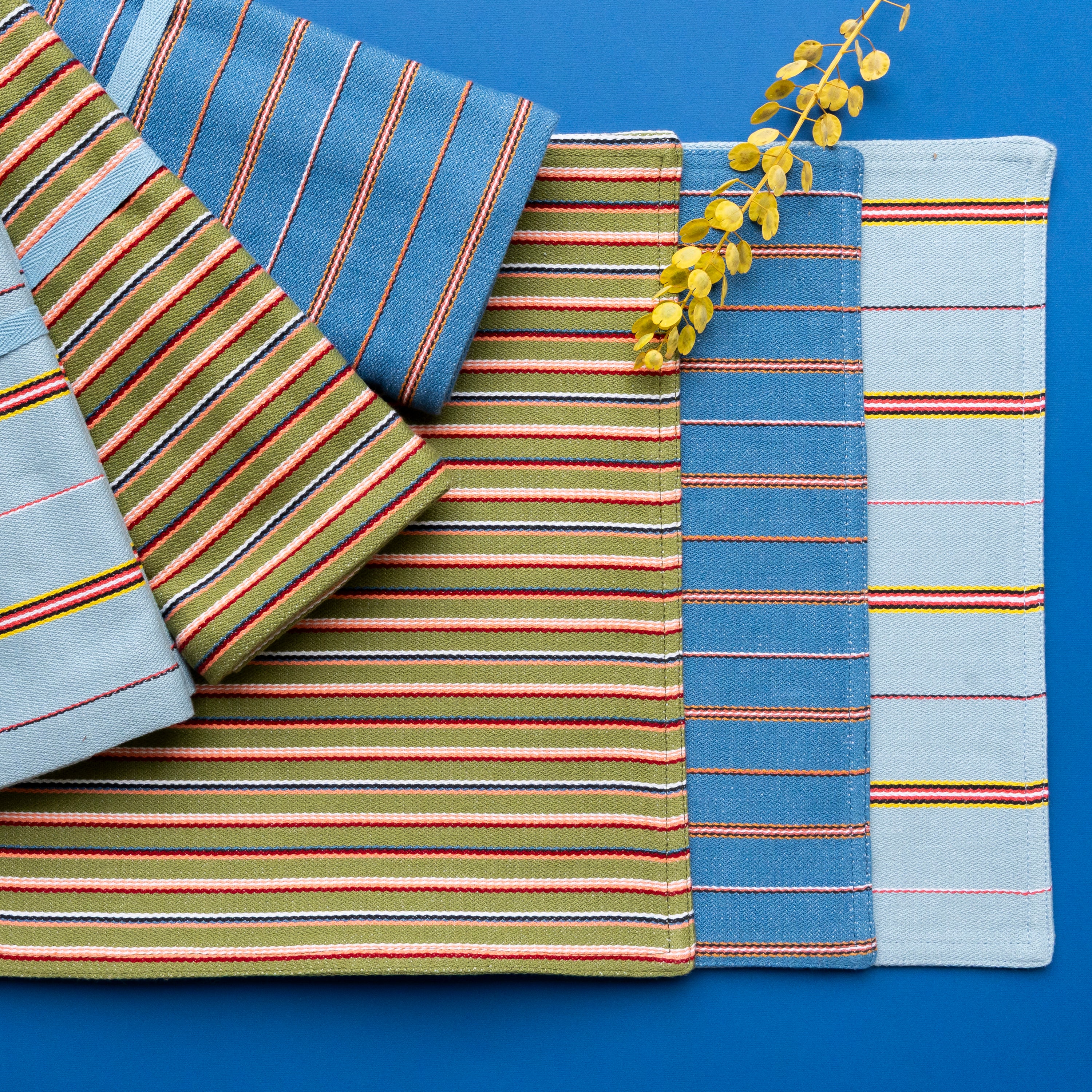 Woven placemat in 100% organic, GOTS-certified cotton with a pattern inspired by a striped waistcoat from the men’s folk costume of Vånga parish in Östergötland, Sweden. It offers a soft and inviting feel, protects the table from spills, and frames your table setting in a stylish way. Looks great placed directly on the table or layered over a tablecloth, and works just as well for everyday meals as for festive occasions.
