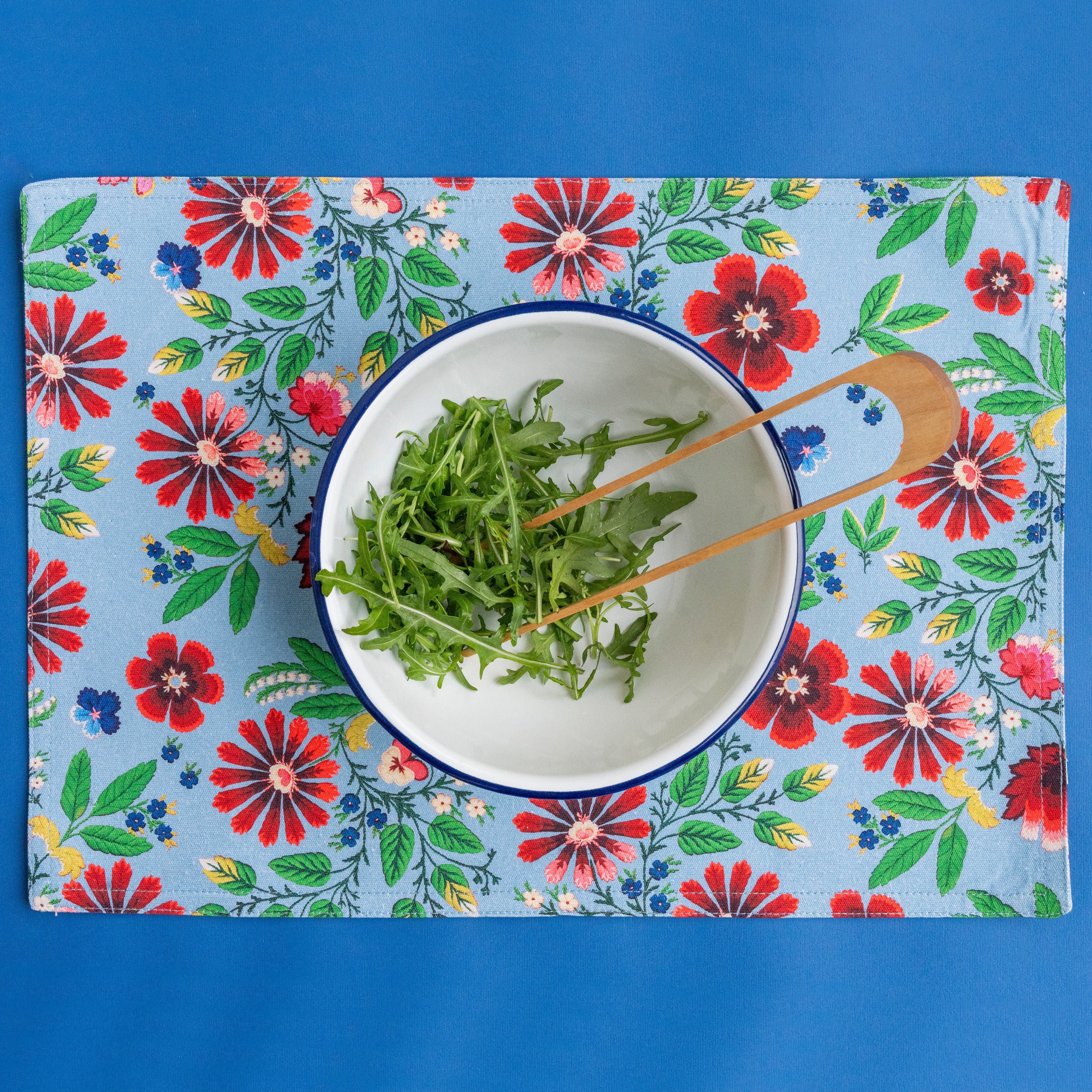 Placemat in woven cotton with a stripe pattern inspired by the Västerbotten folk costume, made from 100% organic, GOTS-certified cotton. Adds a clean and vibrant touch, equally suited for everyday meals and festive occasions. Use it on top of a tablecloth or directly on the table – a stylish detail that also protects against spills and stains.