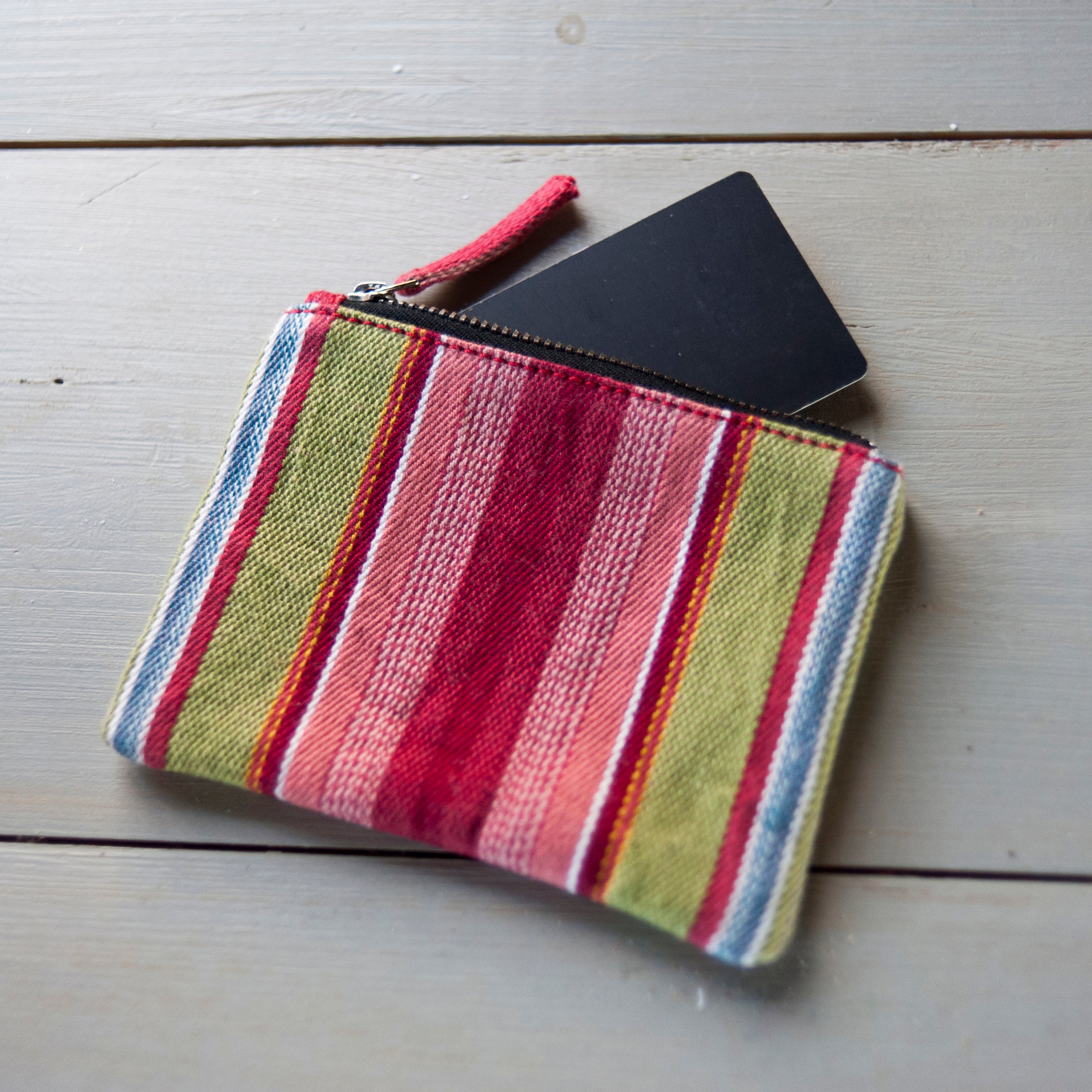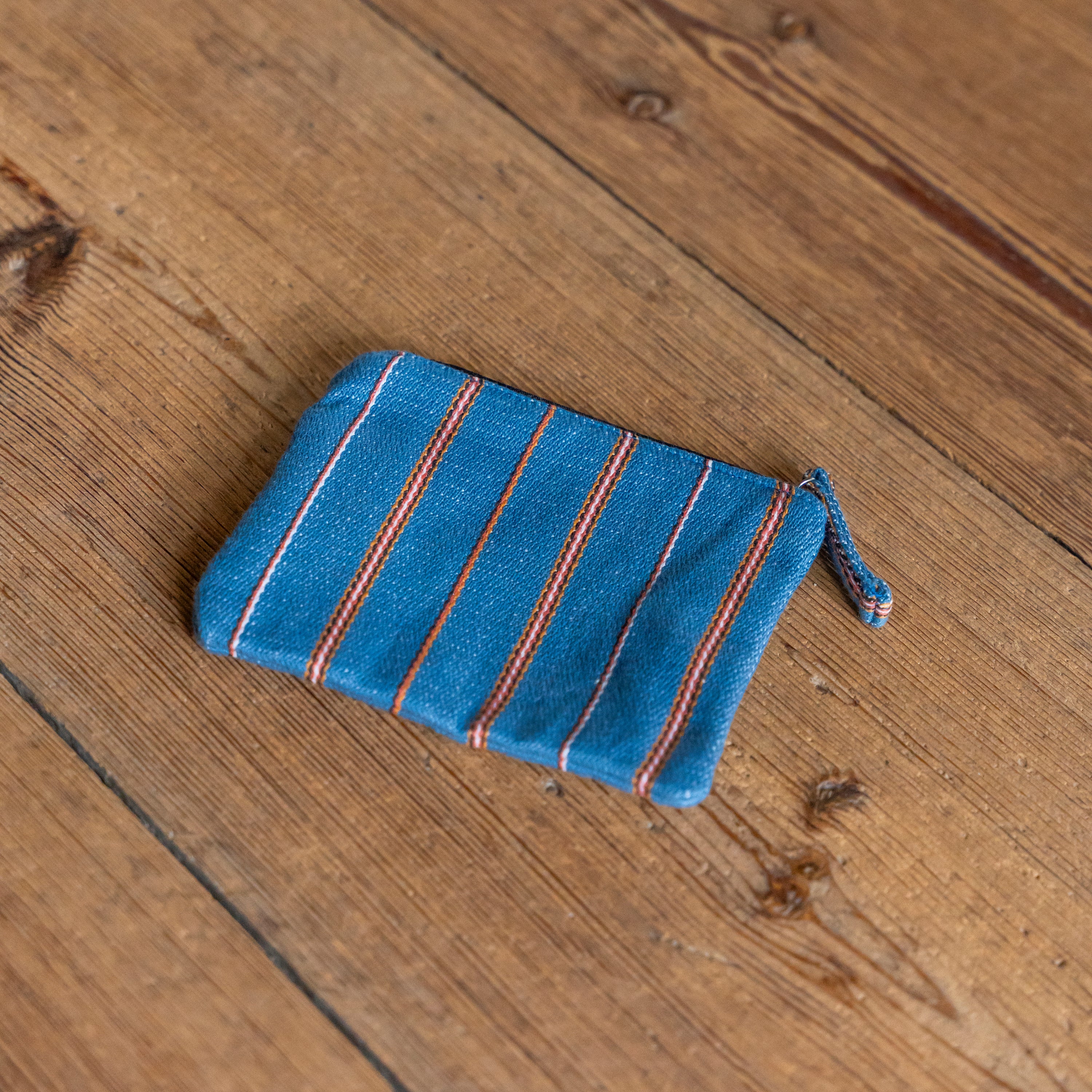 Small and handy coin purse in woven cotton with a striped pattern inspired by the folk costume of Västerbotten. Made from 100% organic, GOTS-certified cotton. Just the right size for cards, notes, coins or other small essentials. Fits just as well in your pocket as in your handbag.