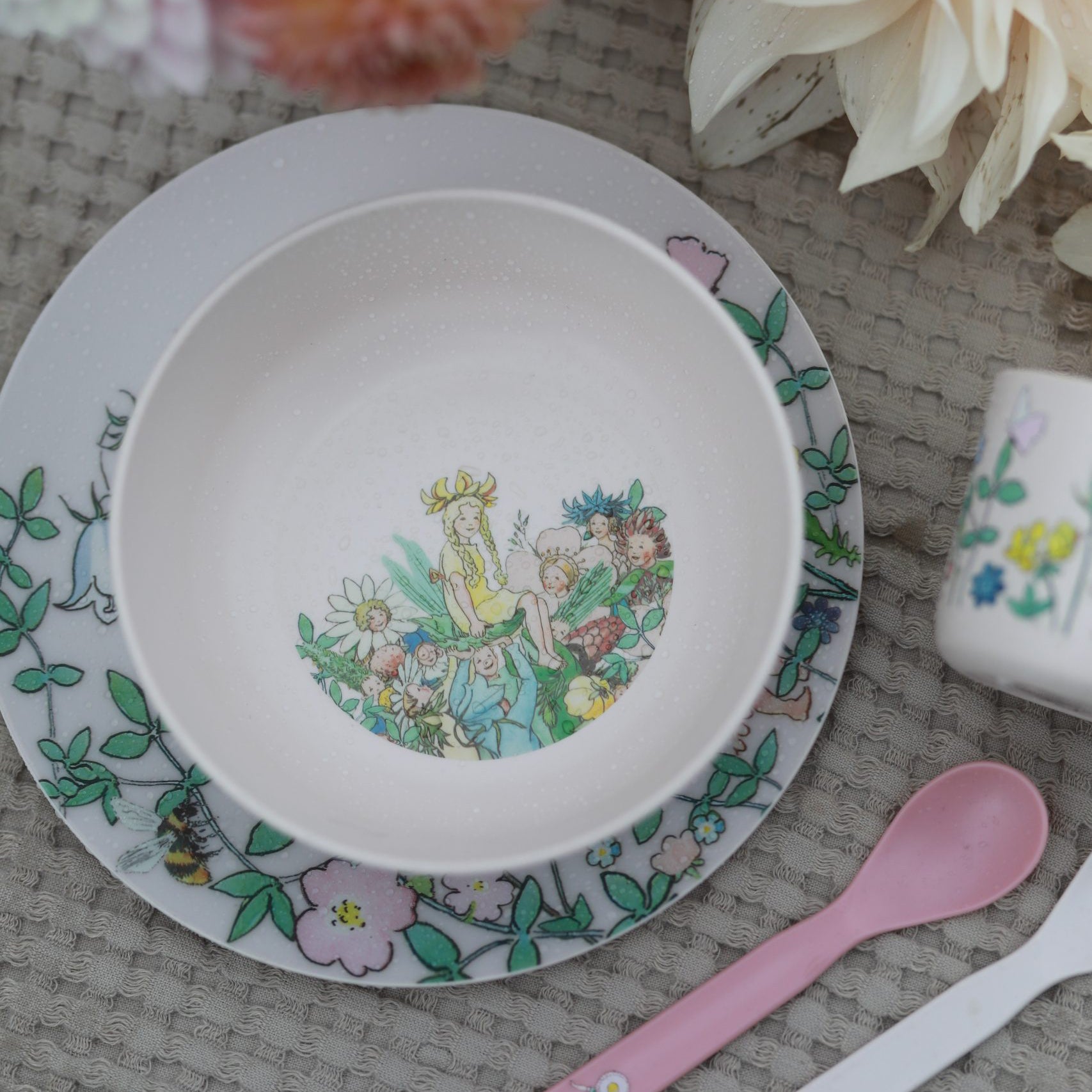 Deep bowl featuring a motif from Elsa Beskow’s The Flower Festival collection. Made from durable and eco-friendly RPET material – a sustainable choice that reduces waste and lowers carbon emissions. Dishwasher safe up to 50°C, but not suitable for microwave use. Perfect for everyday meals or to take along on an outing. Avoid abrasive cleaners and sharp utensils, as they may scratch the surface.