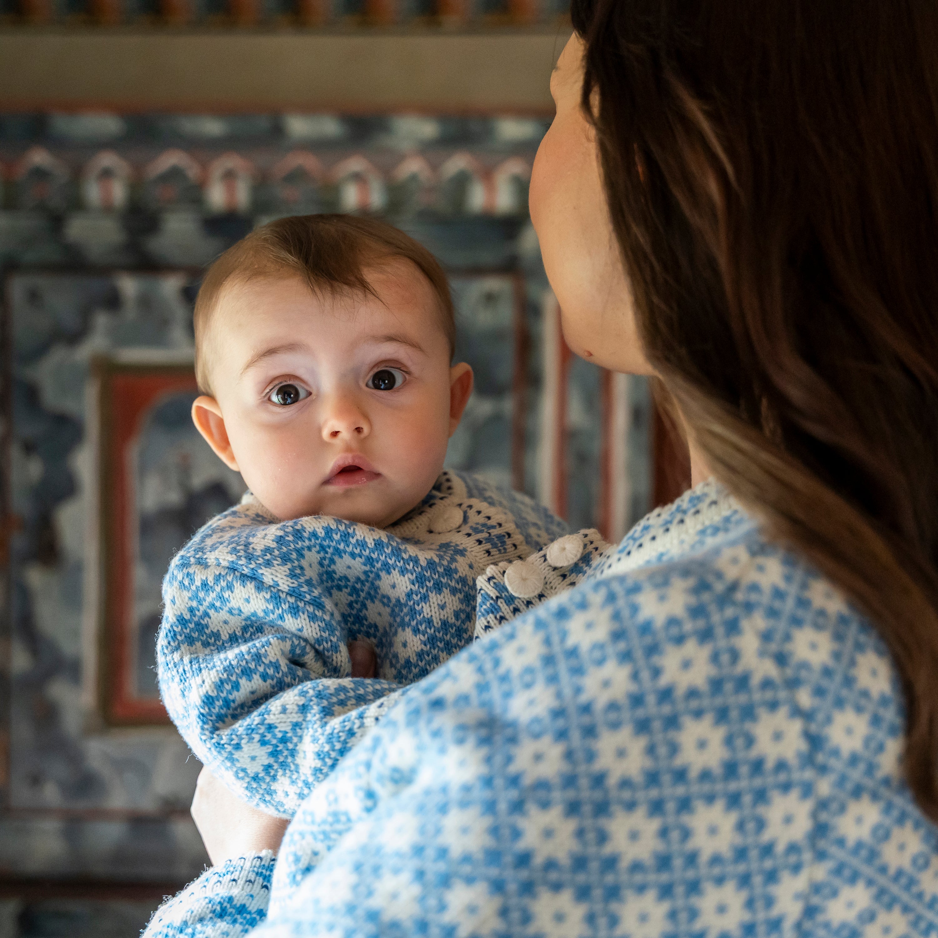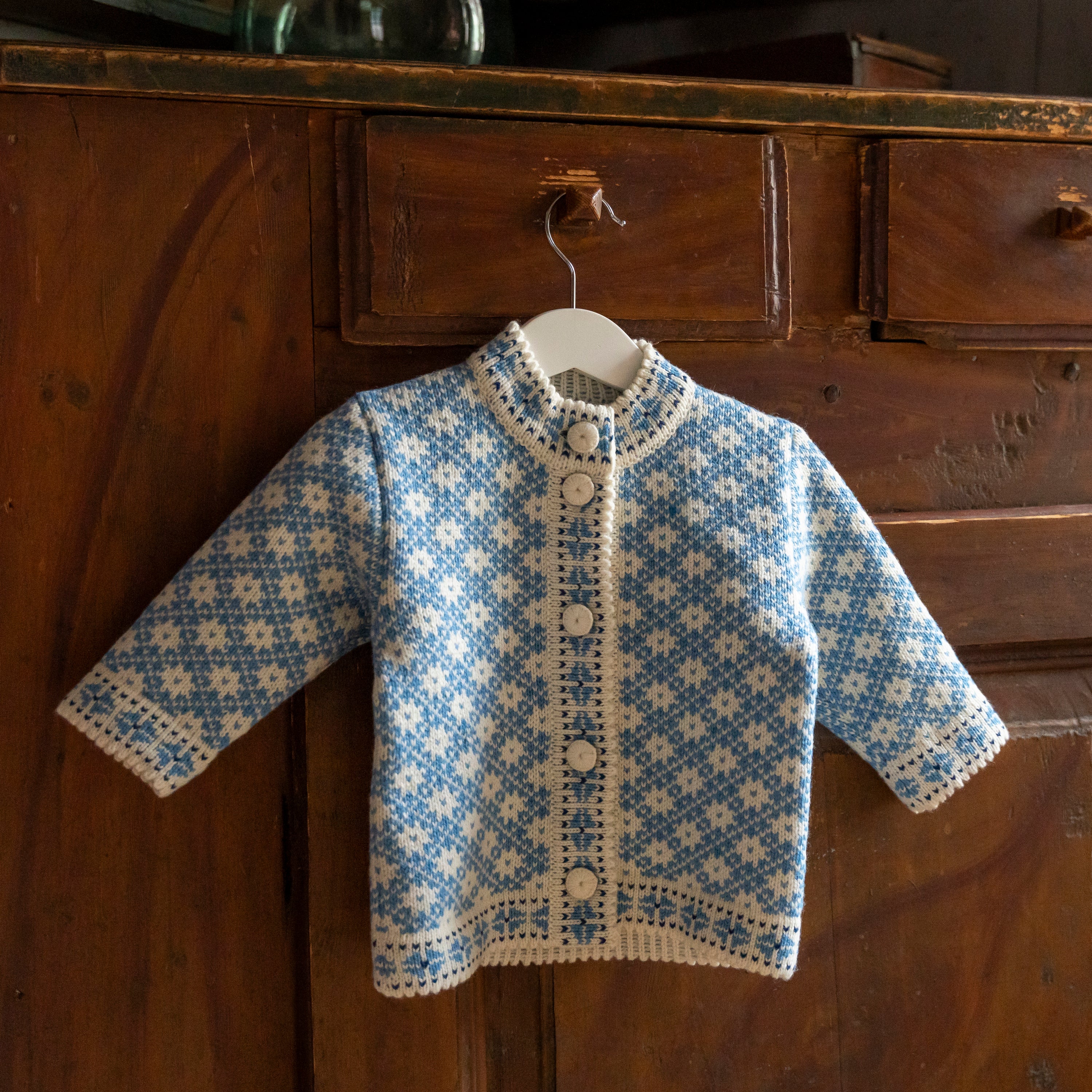 A soft and cozy children’s cardigan in 100% wool, knitted in the same timeless pattern as the adult Kofta Skansen – perfect for matching the whole family. The cardigan has a straight, comfortable fit with fabric-covered buttons at the front, making it easy to put on and take off, even for the smallest ones. Available in three lovely colours and just as suitable under a snowsuit on a chilly day as over pyjamas on a cool evening.