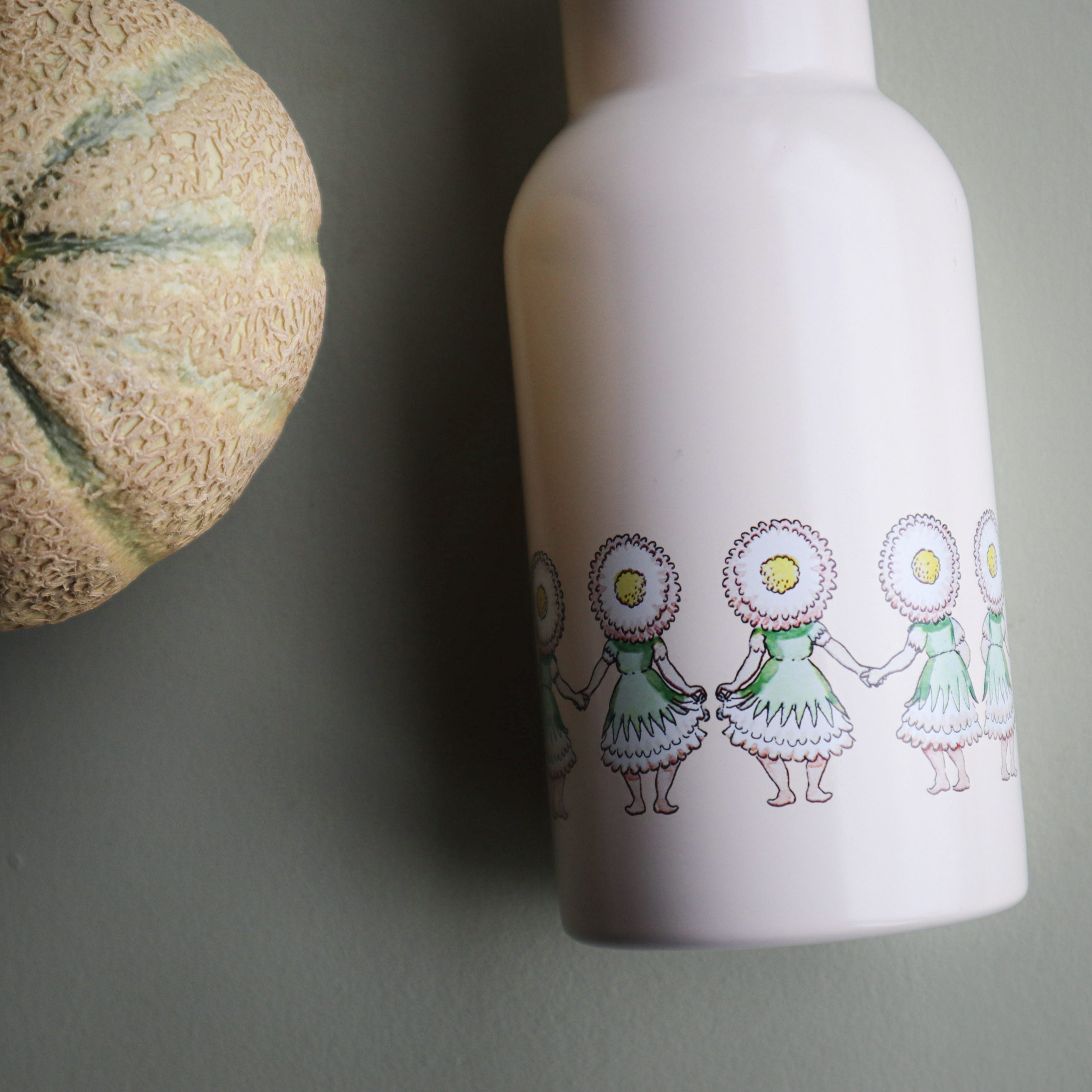 Water bottle in high-quality steel with a design from Elsa Beskow’s story Blomsterfesten. The bottle has a thermal function that keeps drinks hot or cold and a removable plastic straw that ensures just the right amount flows when drinking. Easy to open and close. Holds 340 ml.
