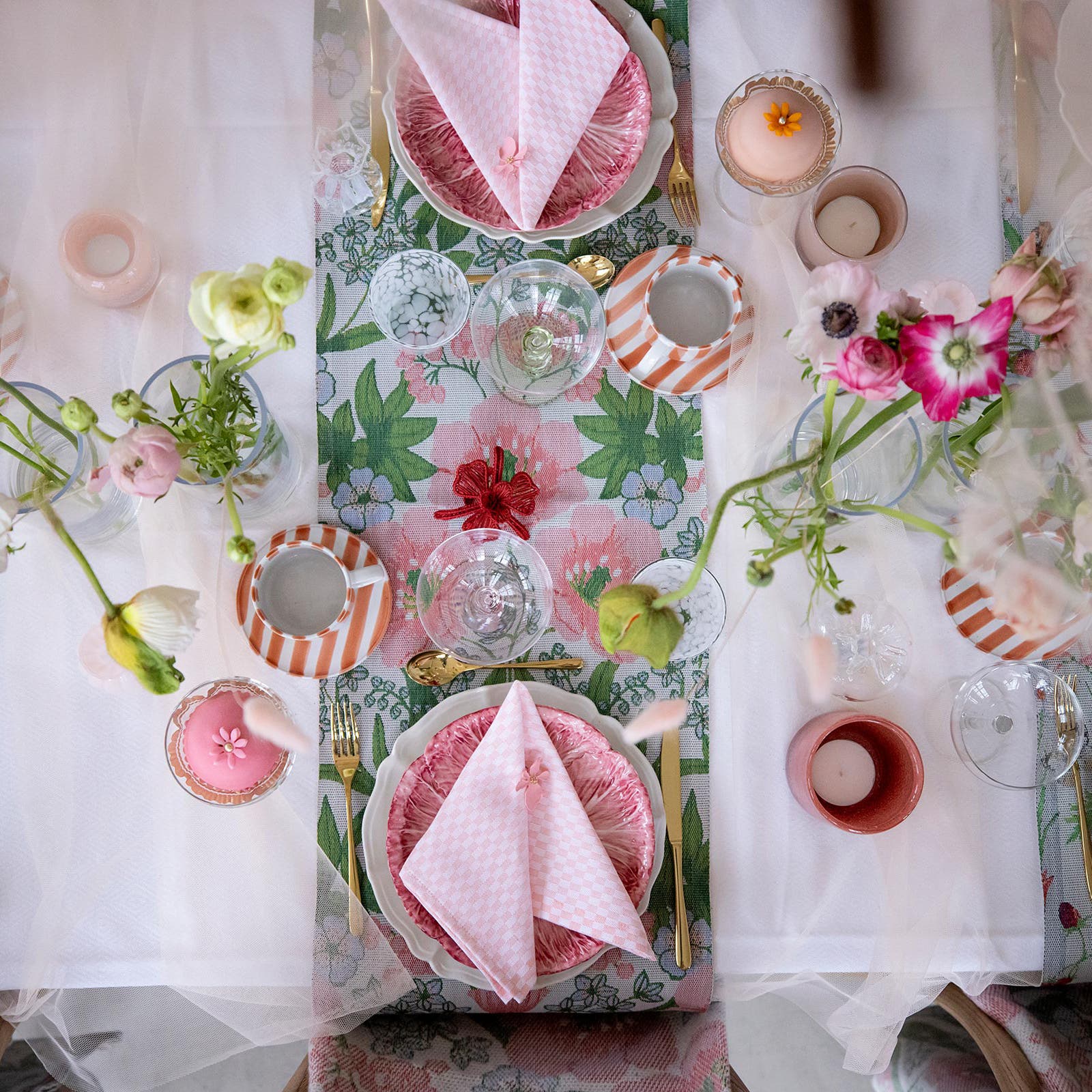 A beautiful tablecloth sets the foundation. Go for a neutral base that lets your decorations shine, or choose a patterned cloth to add life to the table. The Rooster table runner is perfect for Easter with its pattern of roosters, flowers and hearts in spring colours. It works just as well placed directly on the table or layered over a cloth.