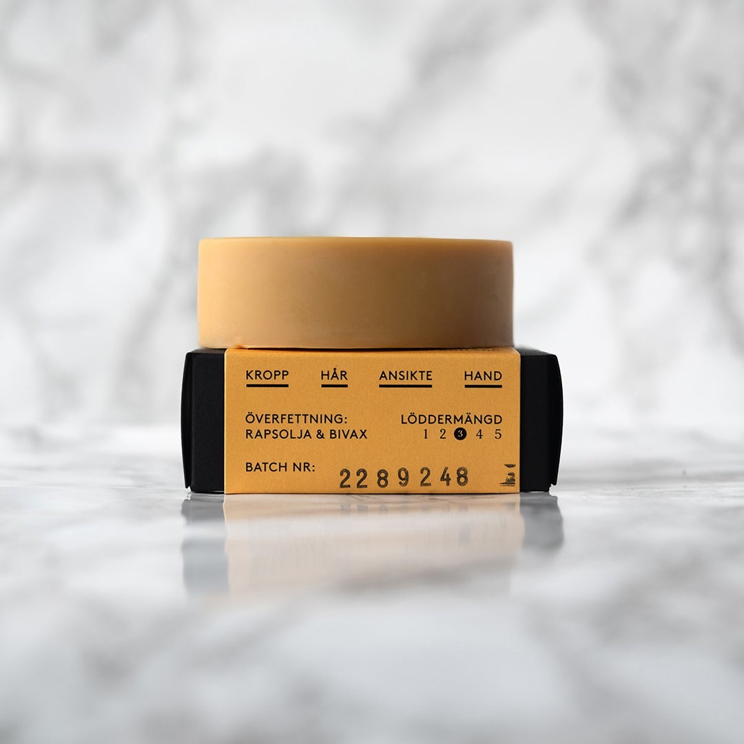 Soap especially made for washing delicate textiles, leather and suede as well as knitted fabrics. Made by K.A Almgren Sidenväveri which was founded in 1833. The company is still located in Södermalm, in Stockholm, and is the only remaining silk weaving mill in northern Europe.