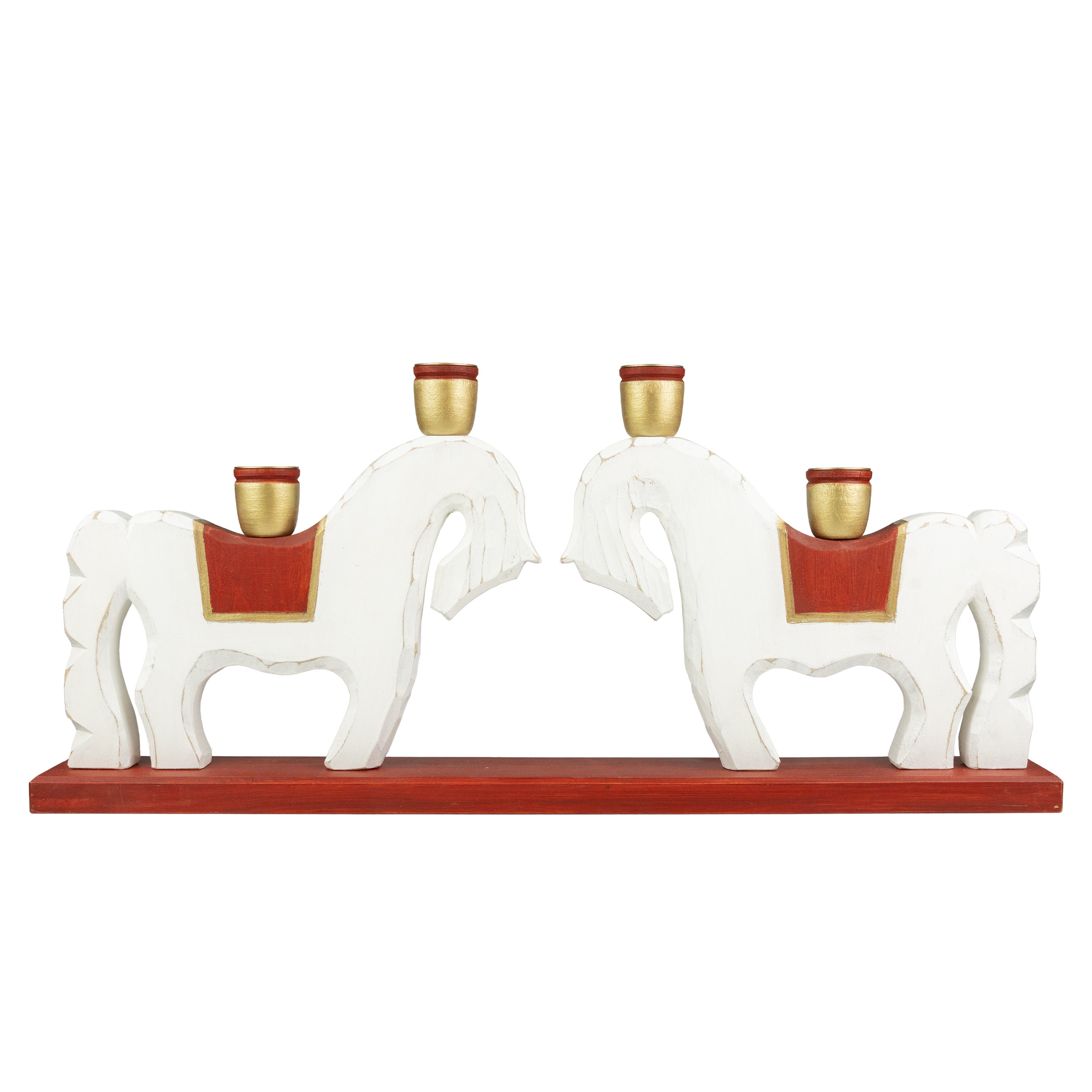 Beautiful horse-shaped candle holder, crafted and hand-painted by the Lindqvist family in southern Sweden. A timeless addition to your home, guaranteed to bring light and joy for years to come.