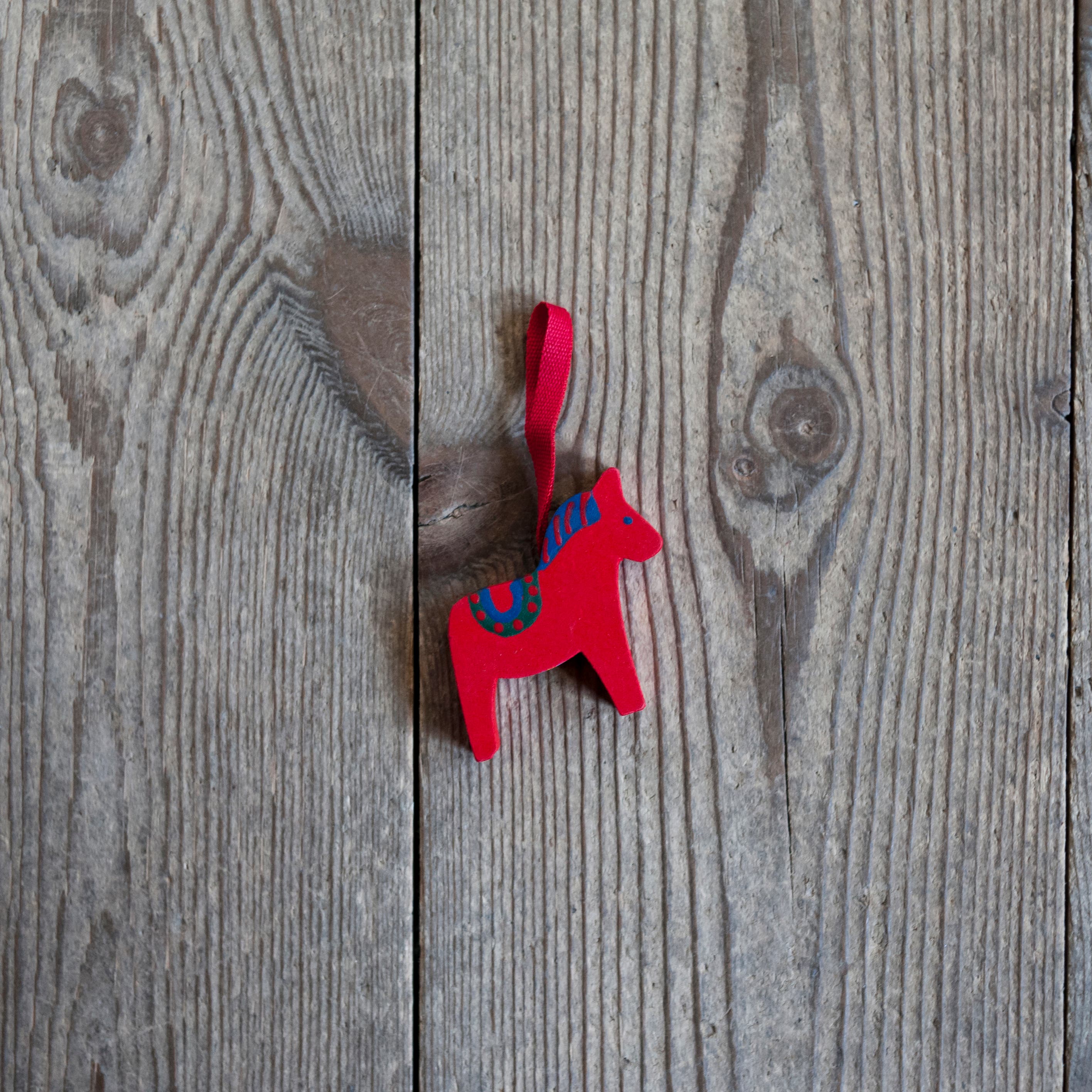 A traditional wooden horse with ribbon for hanging. Perfect as a Christmas tree ornament, but it can also be used all year round – for example in an Easter bouquet or as a charming decorative detail in the home.