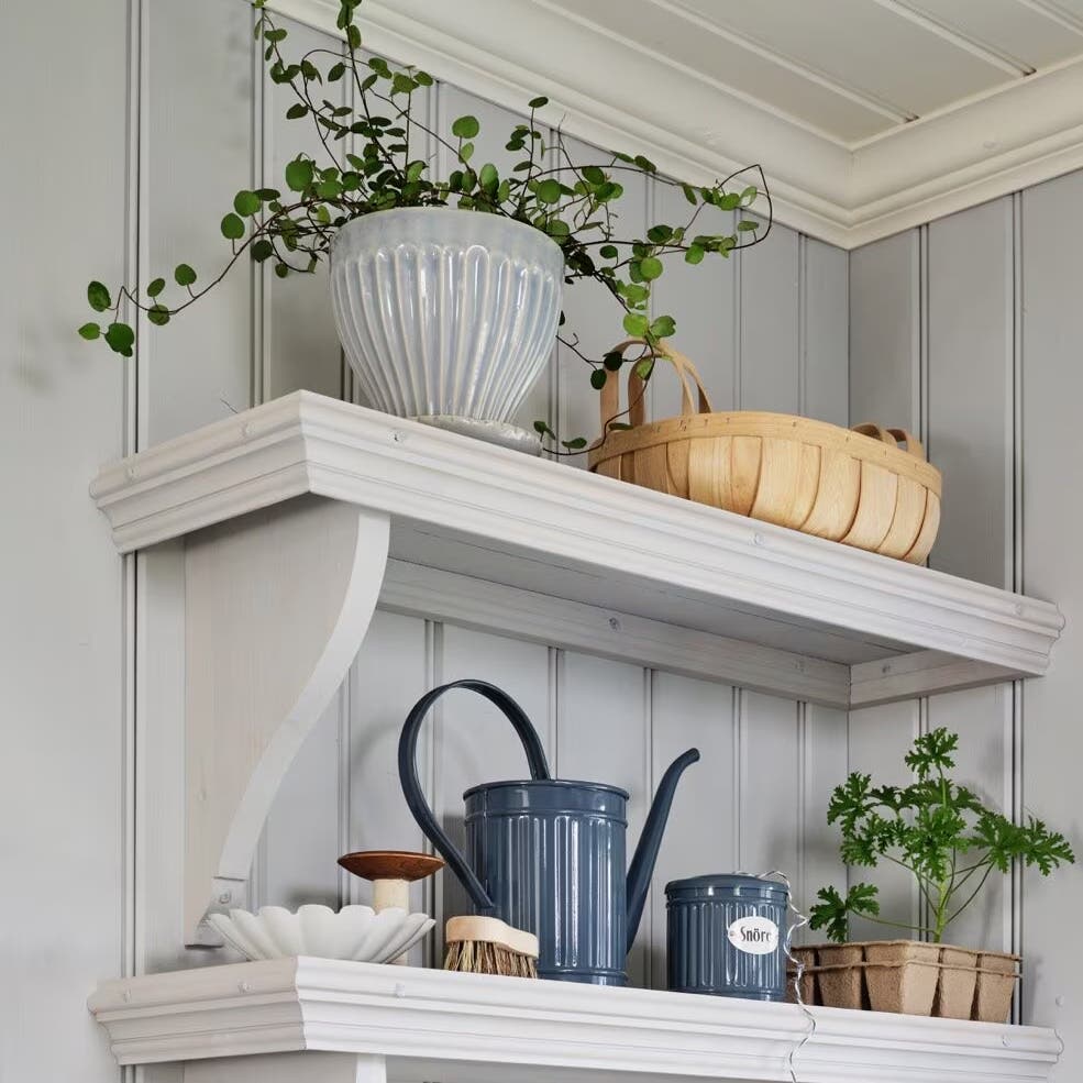 Larger stoneware pot with a relief pattern and a hand-glazed finish in a light blue shade, well suited for a bench, table or a wider windowsill. The natural variations in the glaze give each pot a lively look and highlight both green plants and flowering favourites.