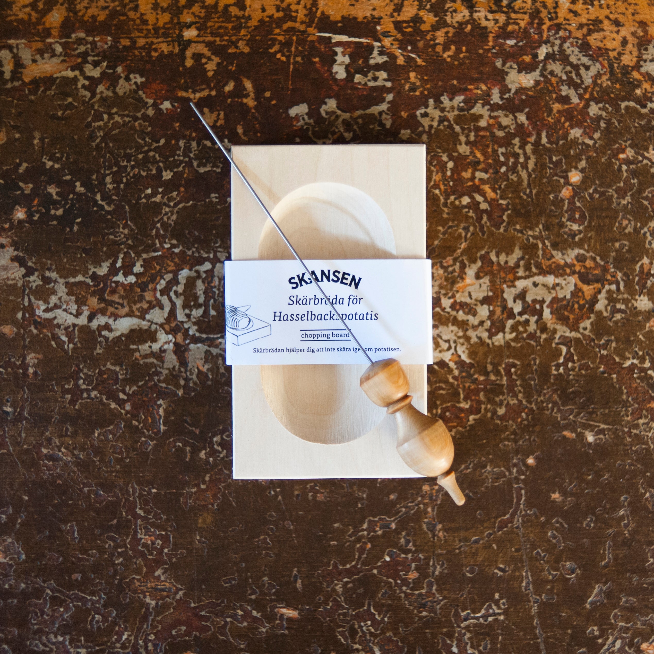 Chopping board för Hasselbacks Potatoes. This chopping board helps you to not cut through the potato. Made in Sweden.