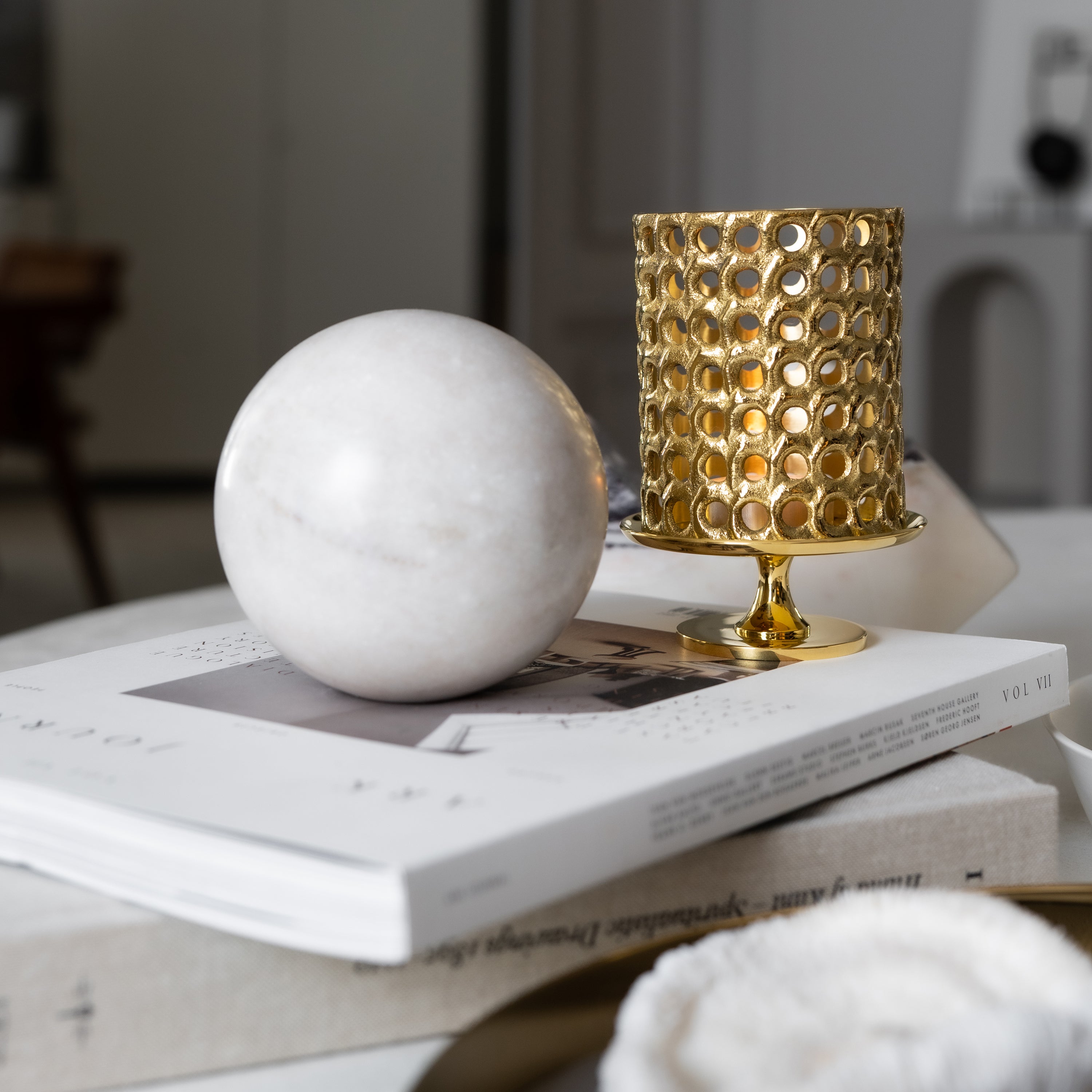 Skultuna has recreated Pierre Forssell’s iconic brass lantern, originally designed in the 1960s. The lantern's timeless design and polished brass create a beautiful light diffusion. In this new version, the perforations are incorporated directly during casting, offering a modern interpretation of the original craftsmanship.