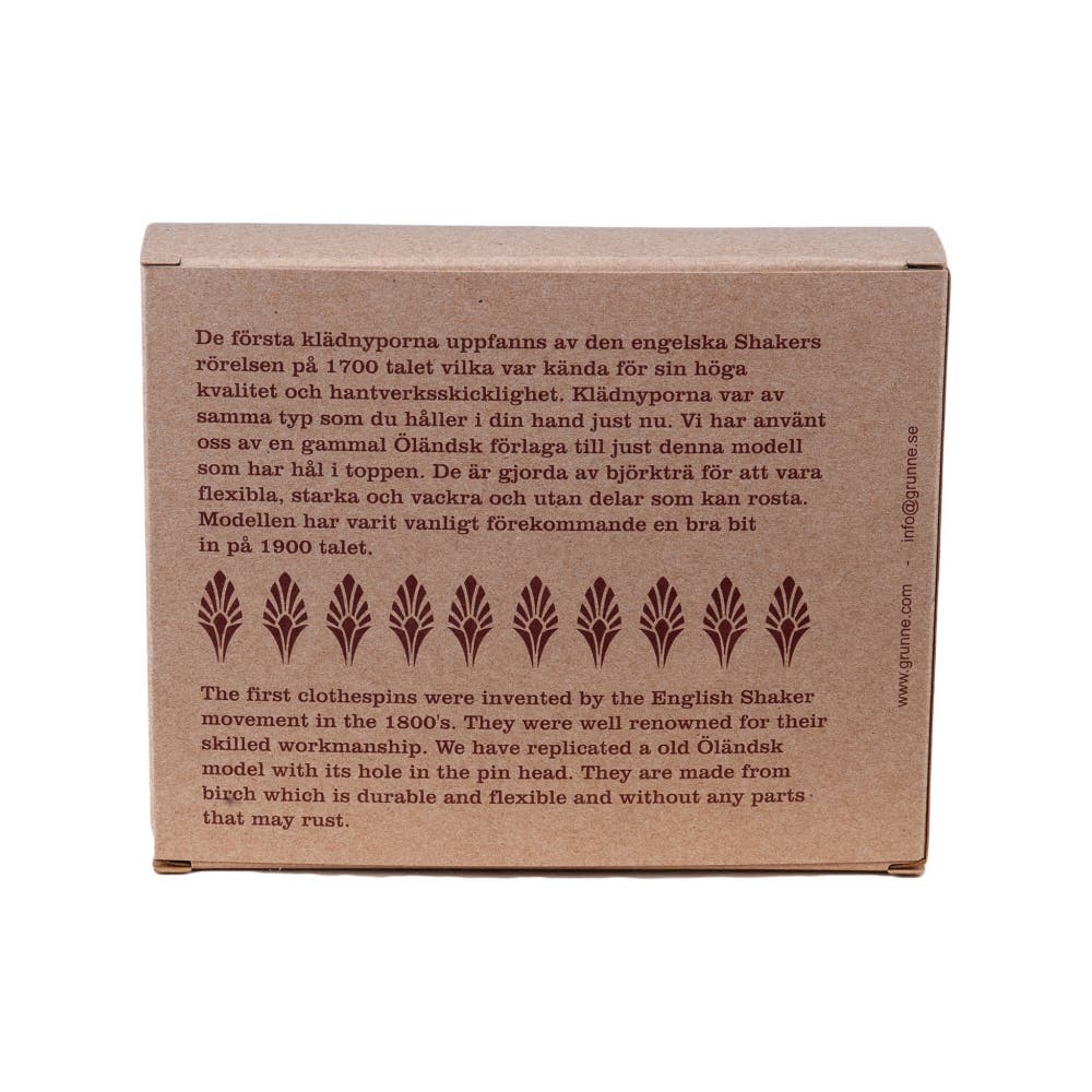 Vintage-style clothespins made of birch wood. The shape is based on an old design from Öland, featuring the characteristic hole at the top. Made entirely of wood, with no metal parts that can rust – just as useful for the clothesline as for crafts or decoration.