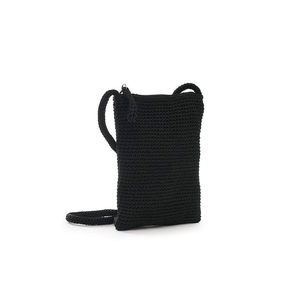 A mobile bag, crocheted in a soft material, worn over the shoulder. Perfect when you're out for a walk, moving around the city, travelling, or want to keep your hands free on an outing. The size fits your essentials, such as your phone, cards, and keys.