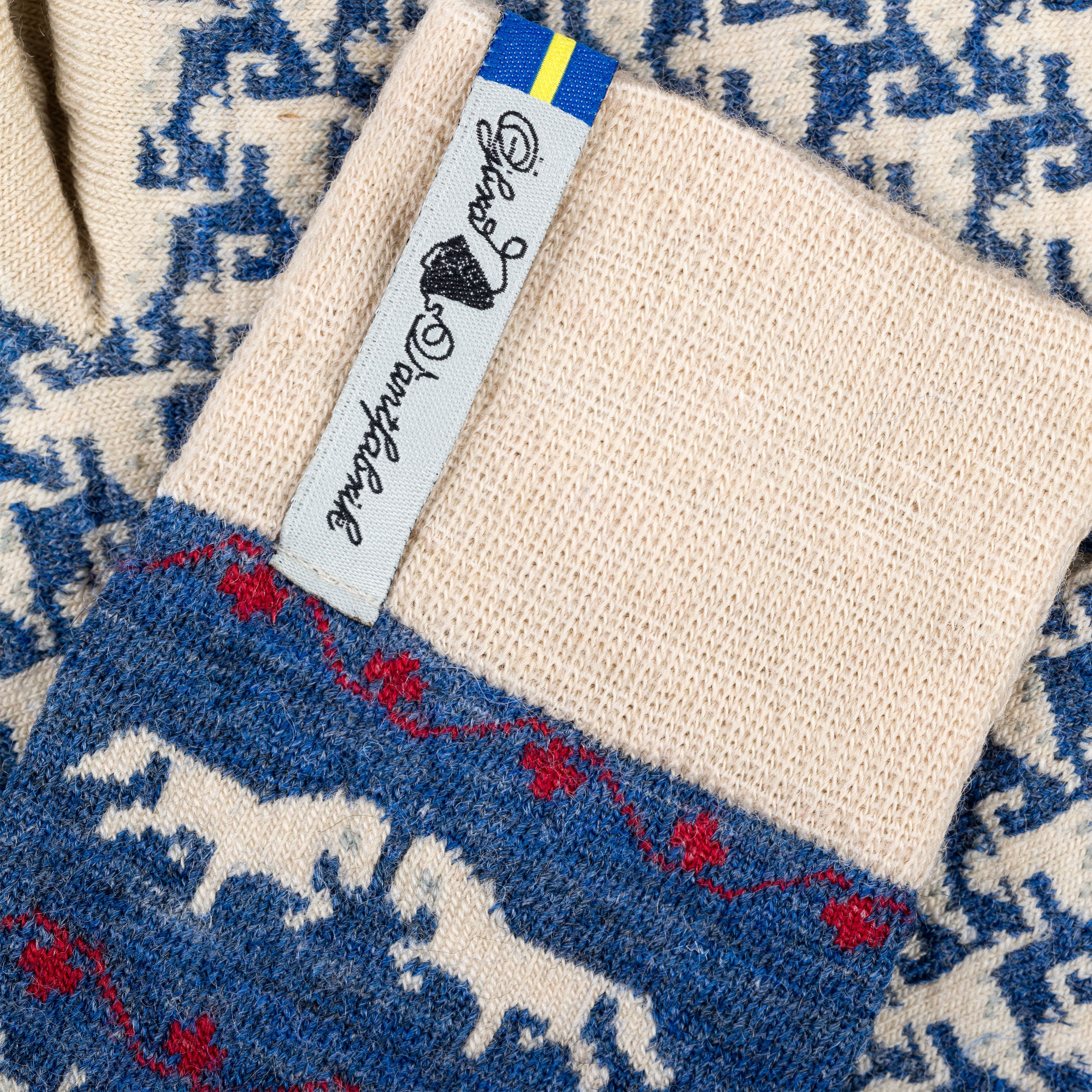 Merino wool sock featuring a beautiful pattern inspired by the song "Jungfrun hon går i ringen", colored in classic shades. These socks fit most shoes and provide warmth without being too thick.
