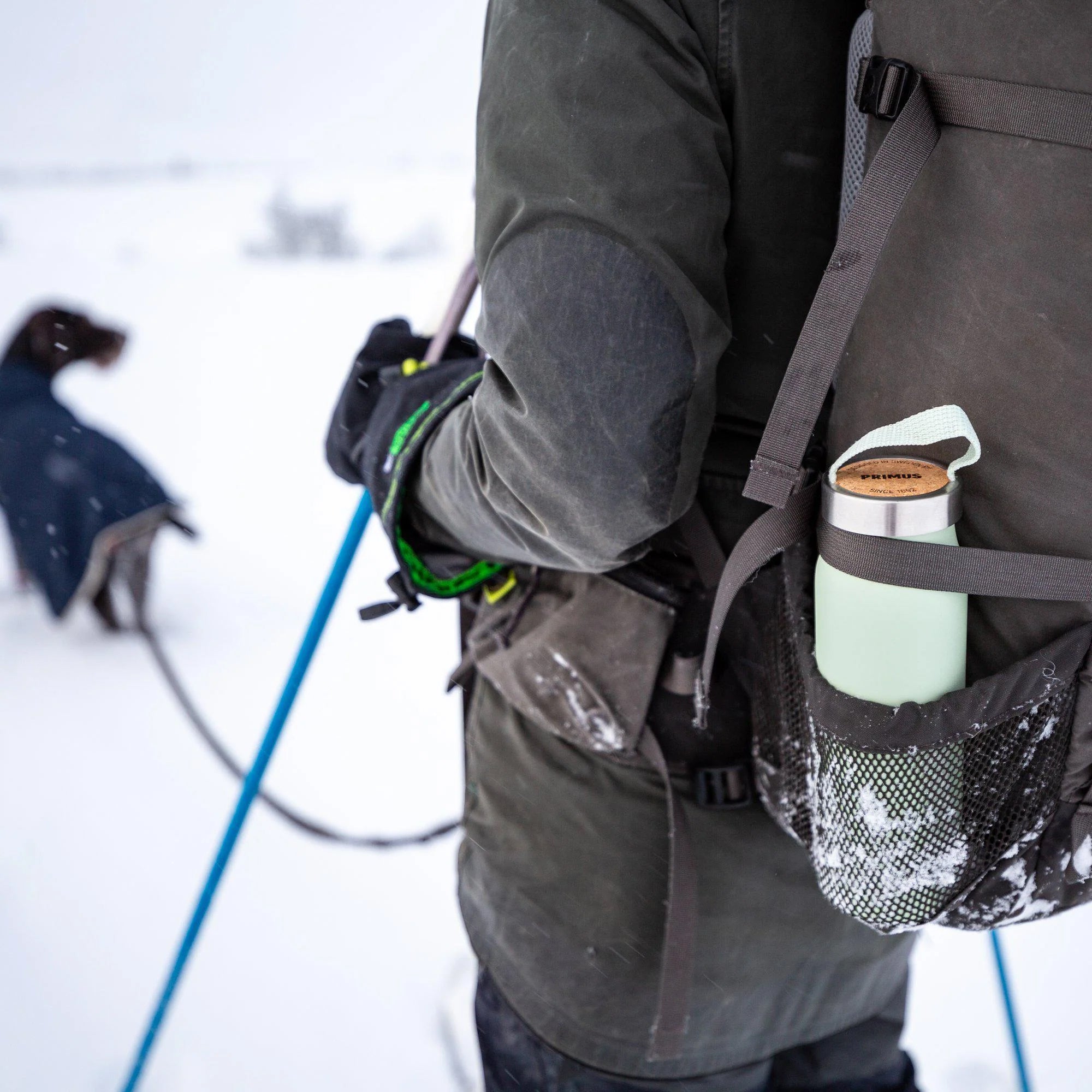 The Klunken is a durable stainless steel thermos bottle, designed by Primus in collaboration with Fjällräven to fit perfectly in the side pocket of your Kånken backpack. Its double-walled vacuum construction keeps your beverage hot or cold for hours. The powder-coated finish provides a secure grip, even when the bottle is wet, and the screw cap with a cork top is easy to open and close. Enjoy hot coffee on chilly winter outings or keep your water ice-cold on warm summer days.