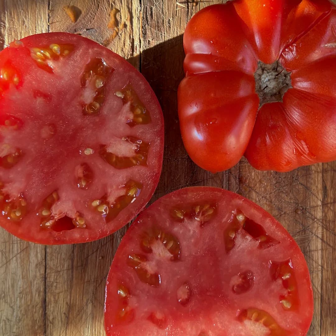 Big, juicy, and full of flavour! This beefsteak tomato produces pinkish-red fruits with a rich, almost spicy taste – perfect for summer salads, sandwiches, or enjoyed straight from the plant.