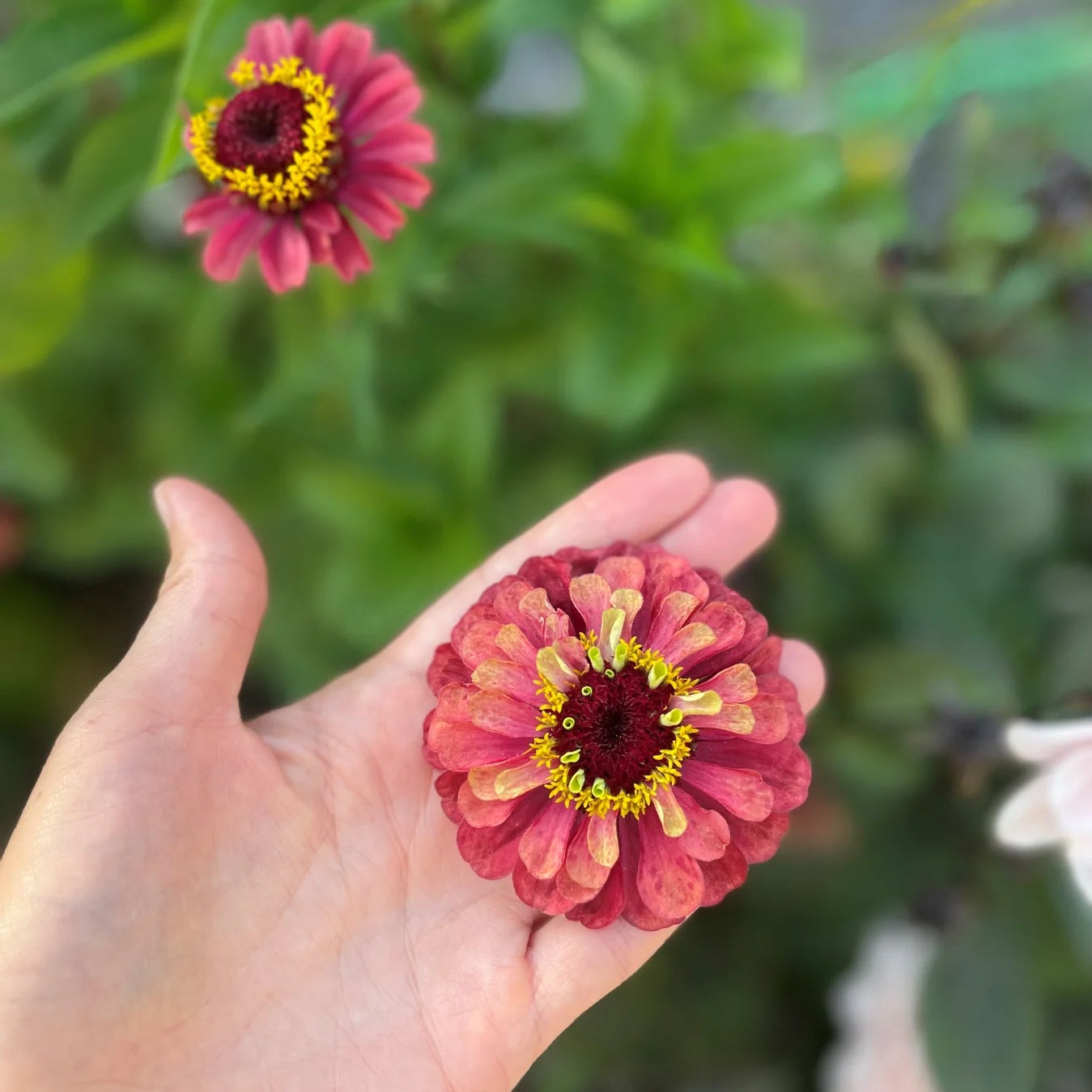 A beautiful zinnia in soft raspberry pink tones with hints of lime green, giving the flower a softly dusty and shifting appearance. ‘Queeny Lime Red’ changes beautifully as it blooms, creating flowers with lovely variations in color.