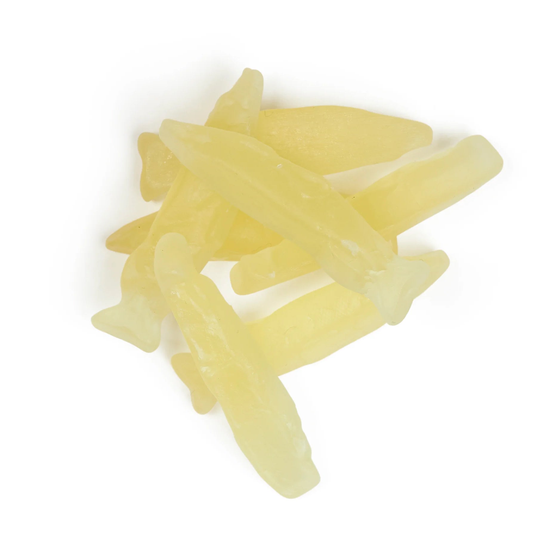 Sugar, inverted sugar syrup, water, corn starch, glucose syrup, acid (citric acid), flavouring, colouring (curcumin), glazing agents (coconut oil, carnauba wax).