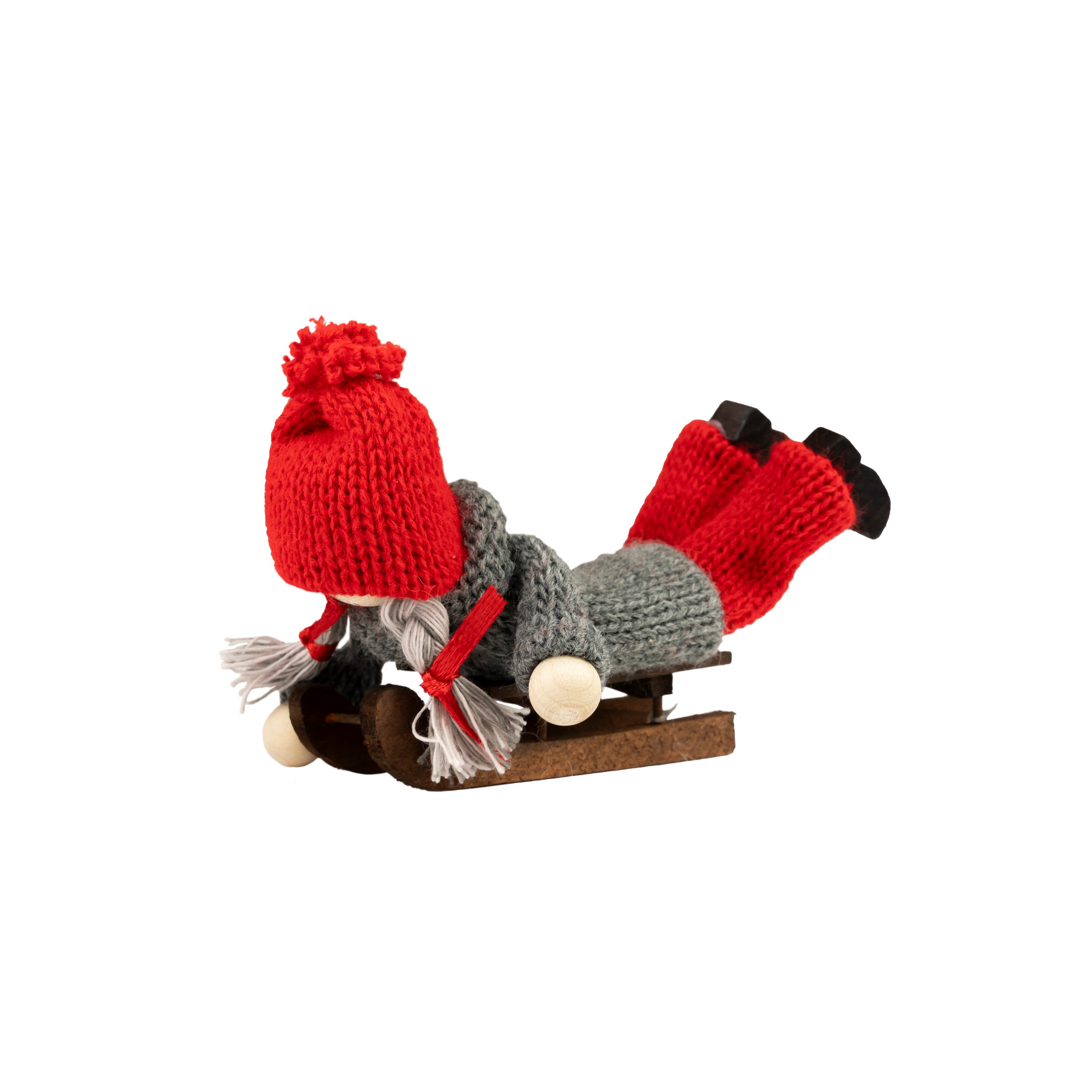 Handmade Santa girl on a sleigh. A charming decoration that brings holiday spirit to your home.
