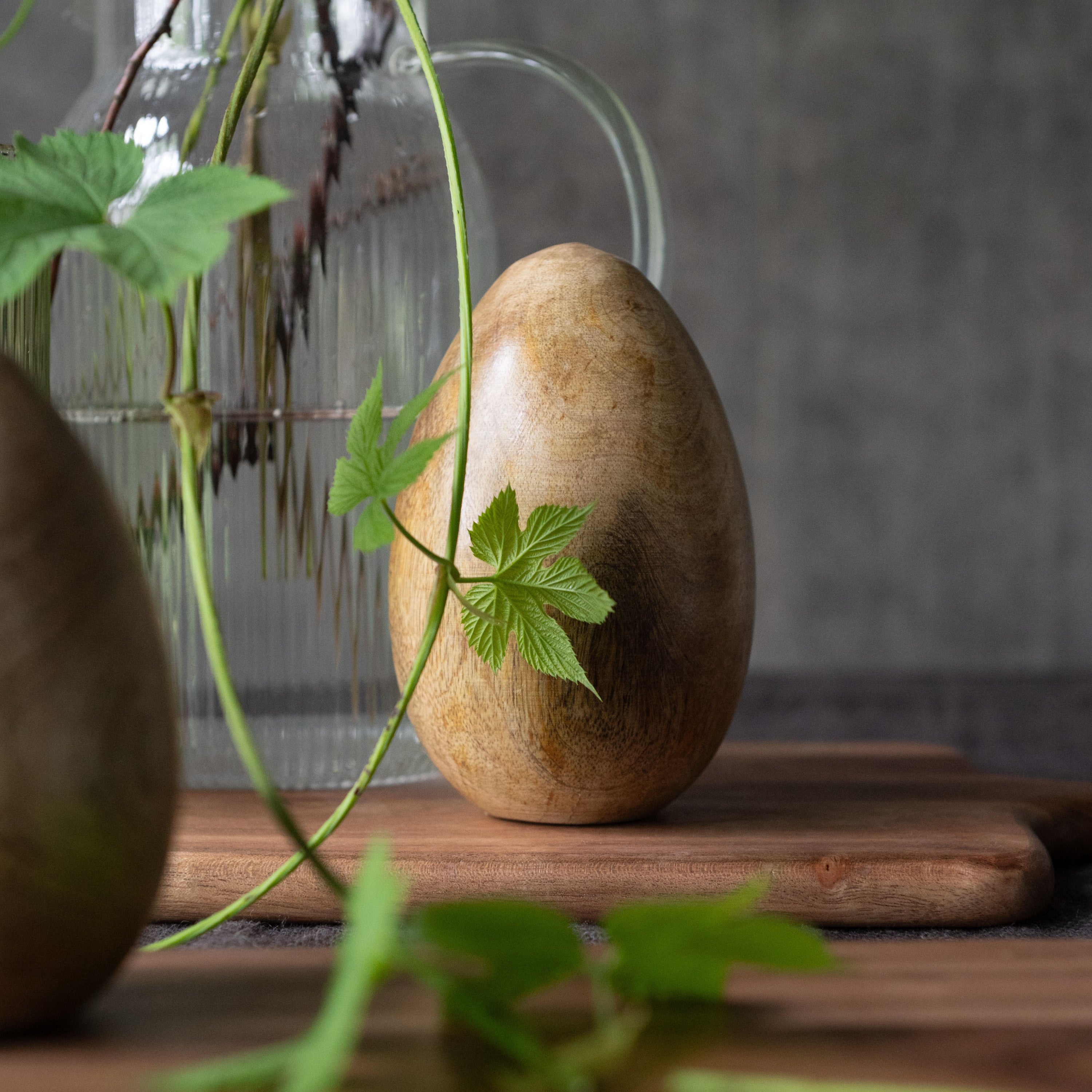 A standing wooden egg that adds a calm expression to spring table settings and decorations. It stands steadily on its own and works well together with other Easter details, while also fitting just as nicely on a shelf or in a window throughout the rest of the year.