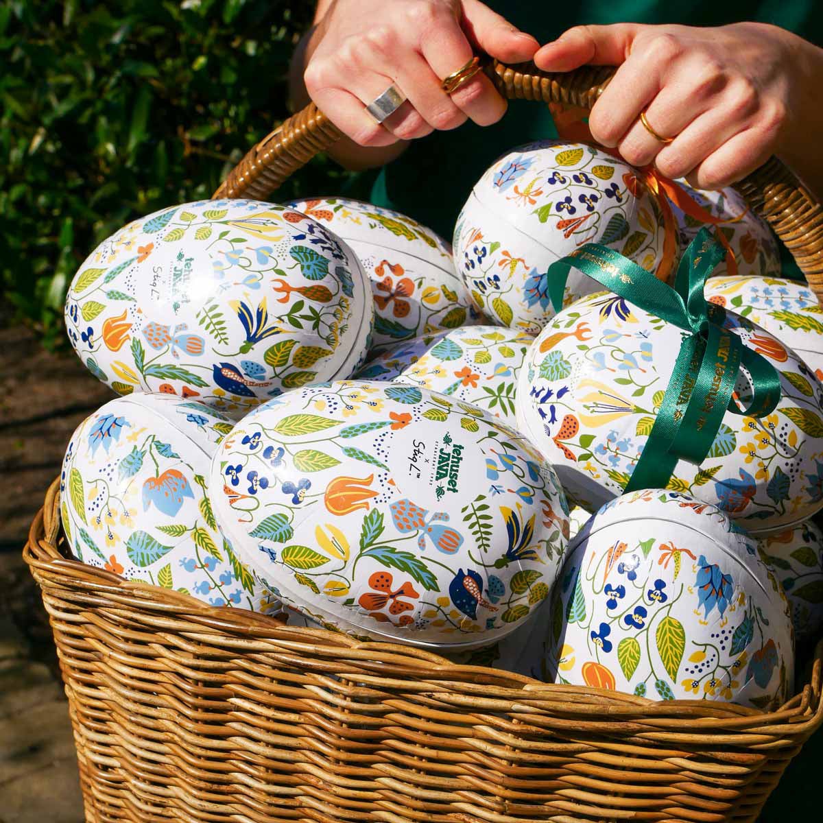 Easter egg decorated with Stig Lindberg’s beloved Herbarium pattern. Exclusively produced by Tehuset Java. A beautiful and reusable egg to fill with sweets, small gifts, or perhaps a surprise for someone you care about.