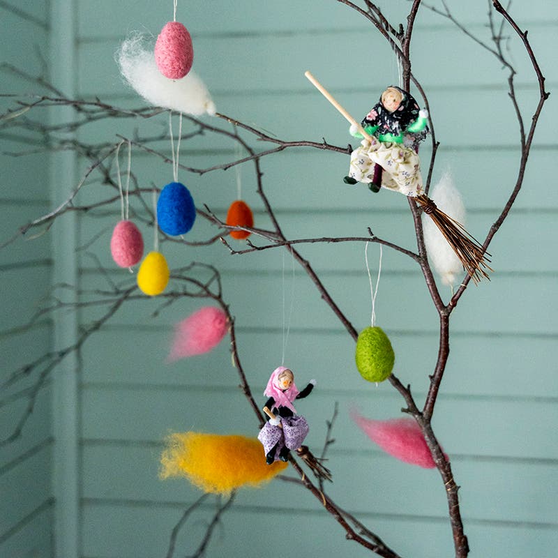 Handmade Easter witches crafted in Sweden by Susanne Nordqvist. Since each witch is individually handmade, every piece is unique. For this reason, they are sold in assorted colors and appearances. Sold individually.