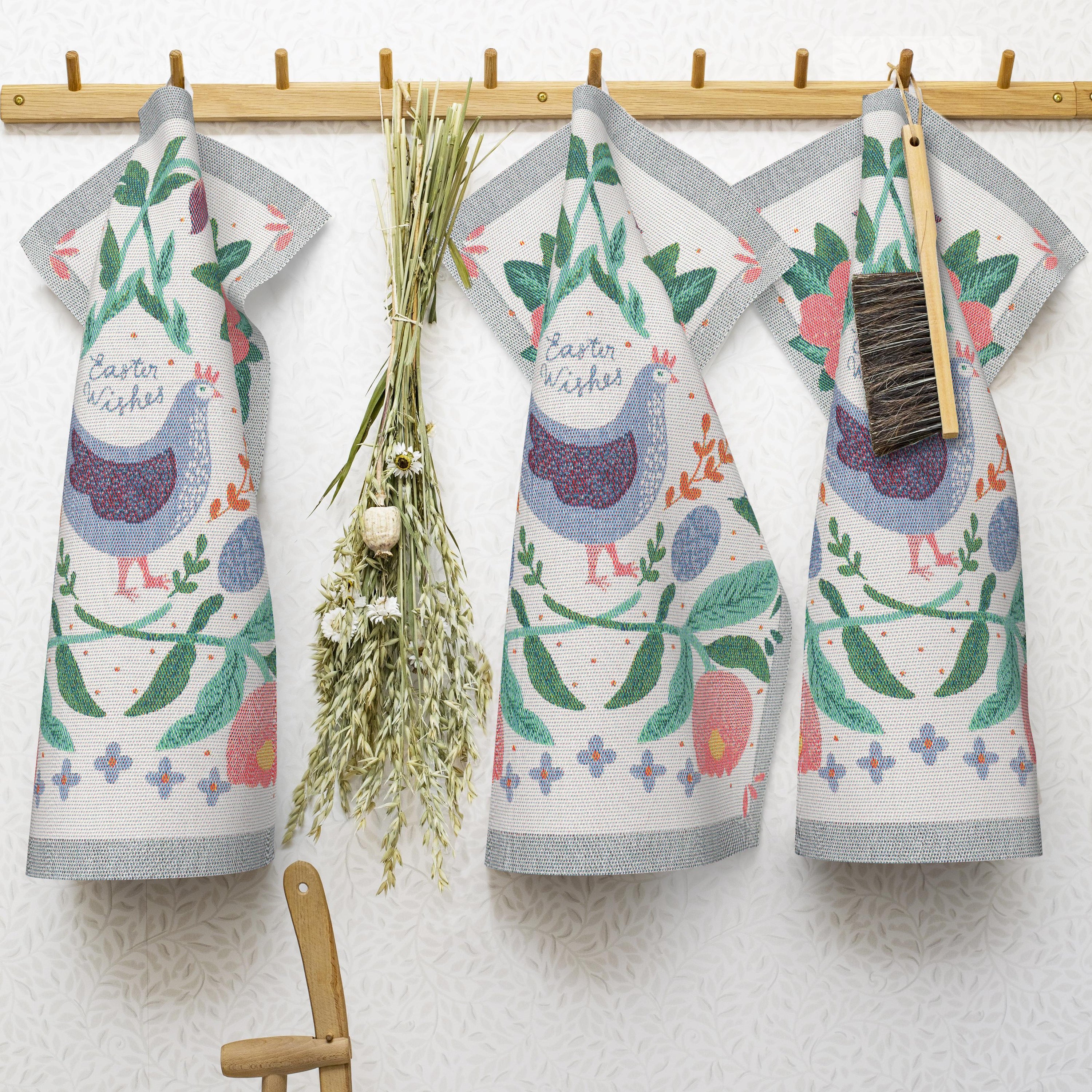 Decorate your home for Easter with the Easter Chicken kitchen towel, made from 100% organic cotton. The playful pattern featuring a hen, colorful flowers, and Easter eggs makes a lovely addition to the kitchen. The soft and durable fabric is perfect for daily use, whether for drying hands or dishes. The towel is GOTS-certified, ensuring an environmentally friendly and responsible production.
