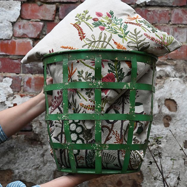 Beautiful cushion cover made of 100% cotton from Klippan Yllefabrik. The pink cover features patterns inspired by the Swedish forest with wild roses, sloe berries, rowan berries, and other lovely plants. A trendy interior detail that will surely elevate your home!