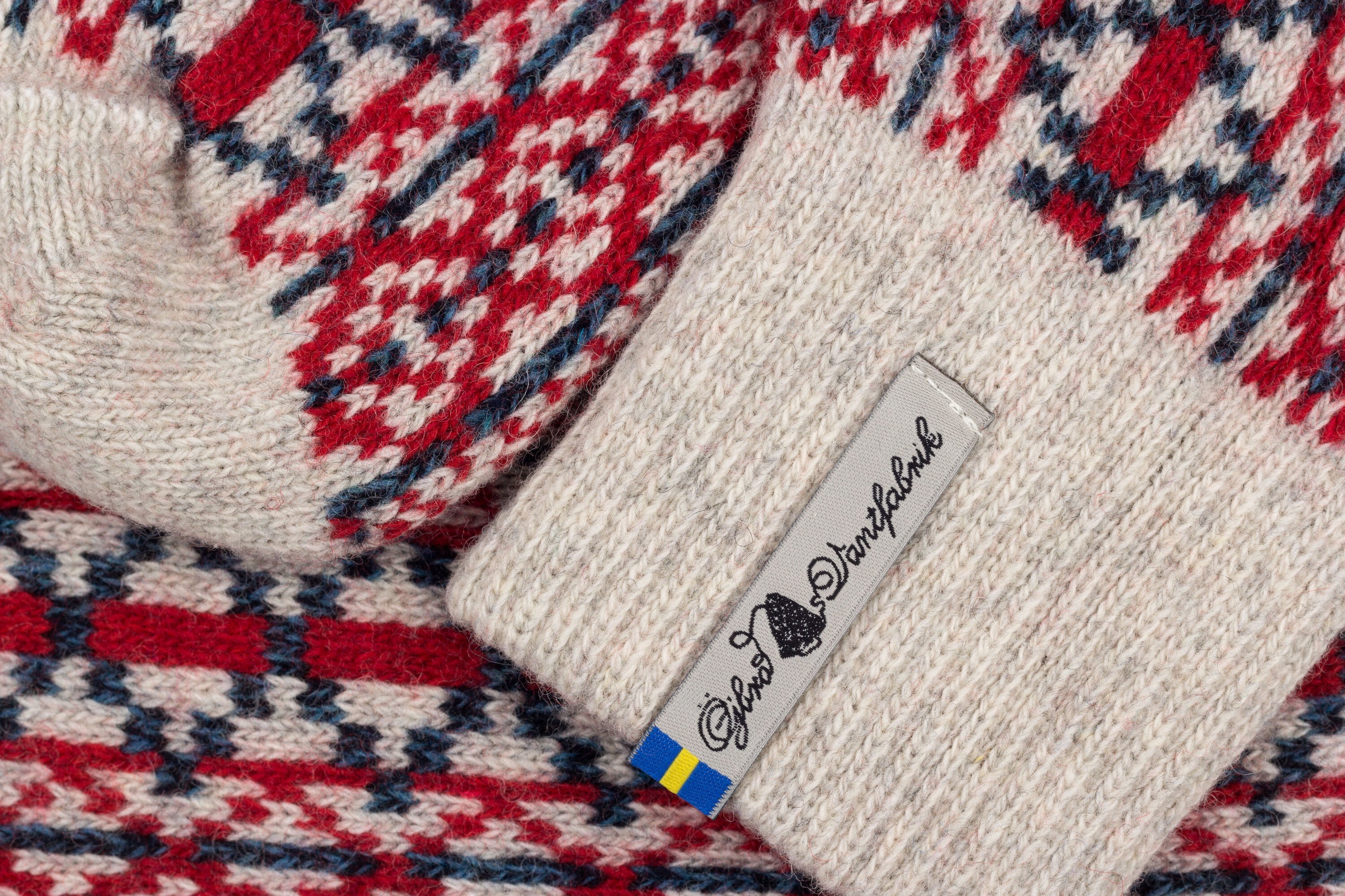 Knähög socka i 70% ull med ett mönster inspirerat av alla kvinnor som vävt dräll i olika tolkningar, och har sedan mönstersatts och färgsatts i Västerbottens färger. Sockorna håller dina fötter varma och sköna, även under de allra kallaste vinterdagarna. Övrigt material: 25% Polyamaid och 5% Elastan.