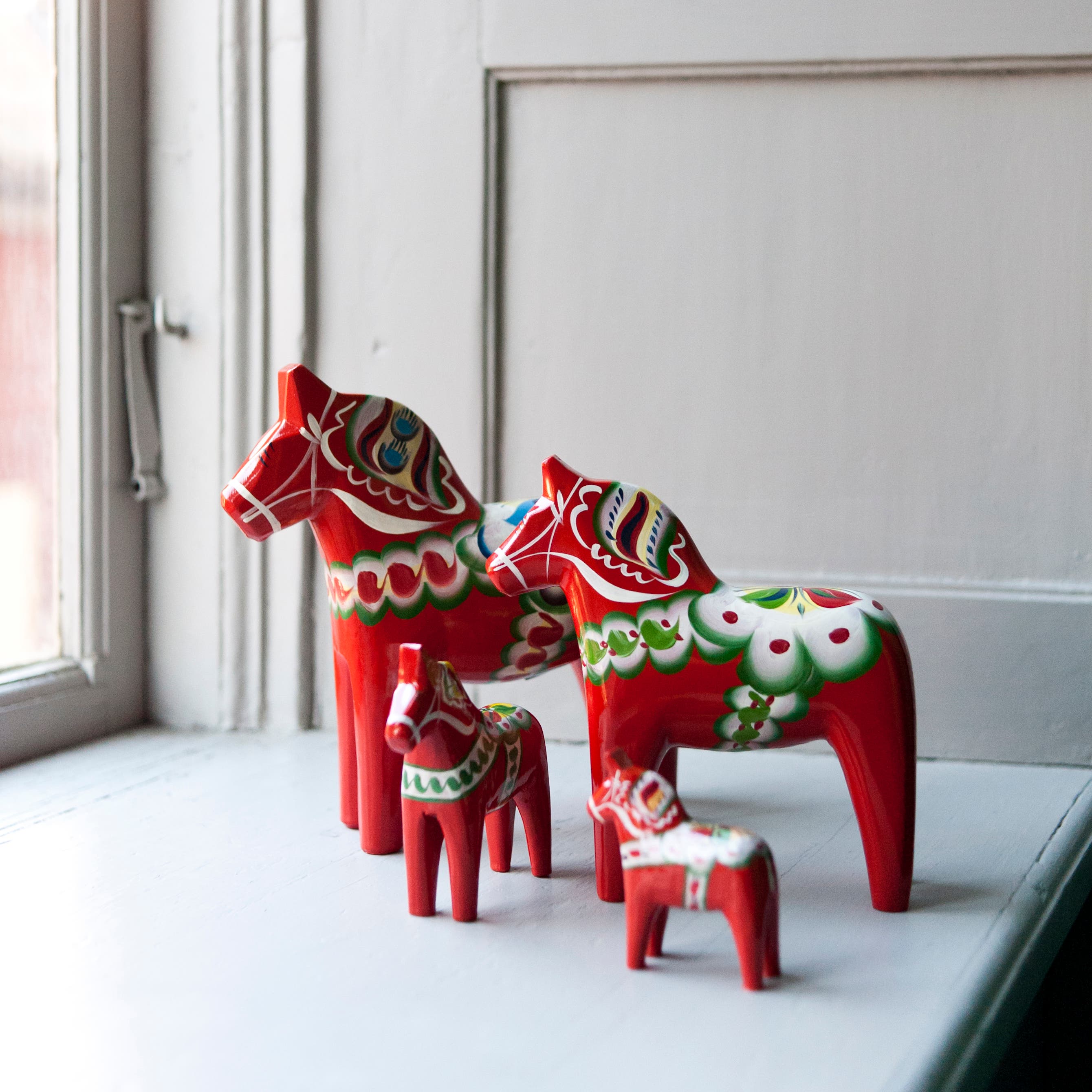 Dalahästen snidas och målas fortfarande för hand hos Nils Olsson i Nusnäs, en av de byar i Dalarna där traditionen tog sin början. Med varsamma penseldrag får varje häst sin karaktäristiska kurbitsdekor, och de små variationerna i färg och mönster speglar det skickliga hantverket.