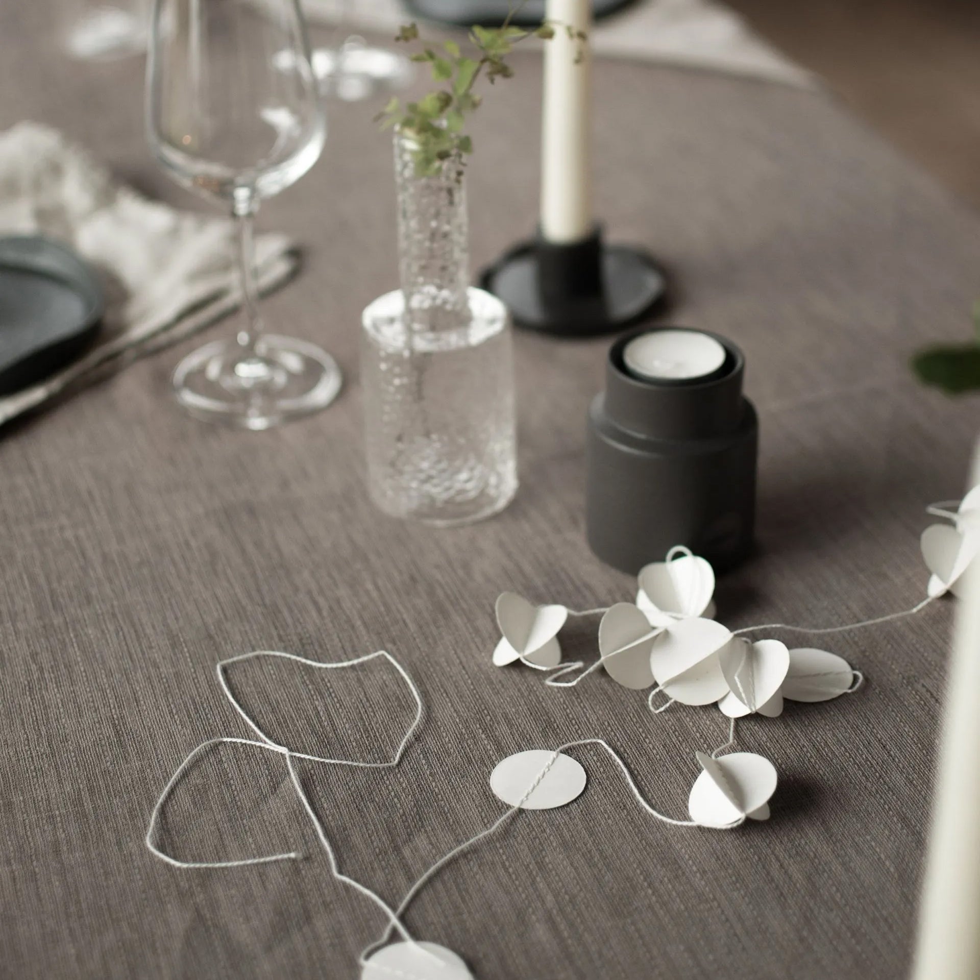 Girlang Circle från DBKD är en enkel men stämningsfull detalj som snabbt förvandlar rummet. De små papperscirklarna hänger lätt på det tunna snöret och ger ett mjukt, luftigt uttryck var du än placerar den. Häng den i ett fönster, i granen eller låt den slingra sig över bordet som en del av dukningen, den skapar genast en varm och inbjudande känsla.