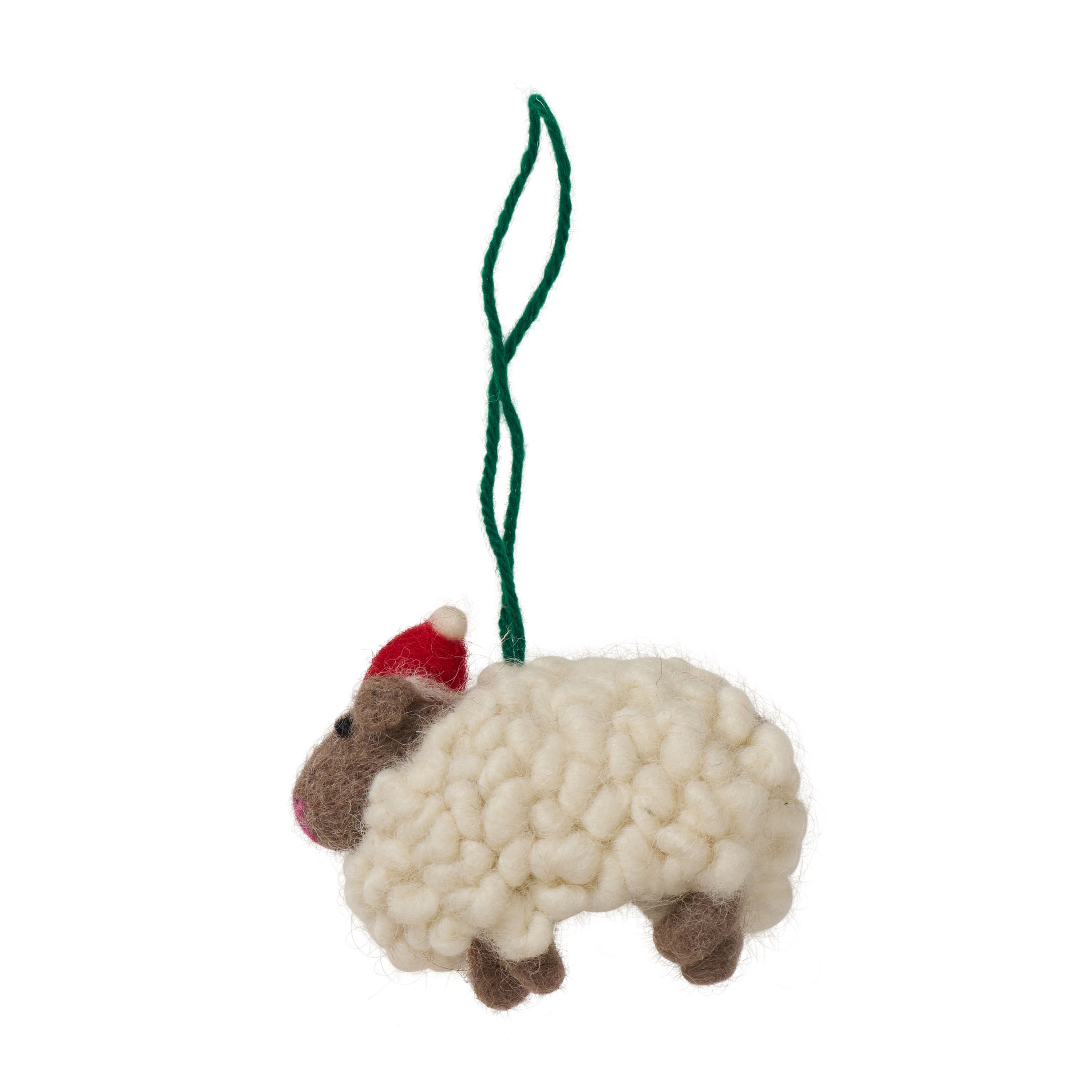 Ett gulligt fårhänge med röd tomteluva i filtad ull som sprider julstämning i granen. Passar också fint att hänga på en krok eller som en lekfull detalj i hemmet under vintern.