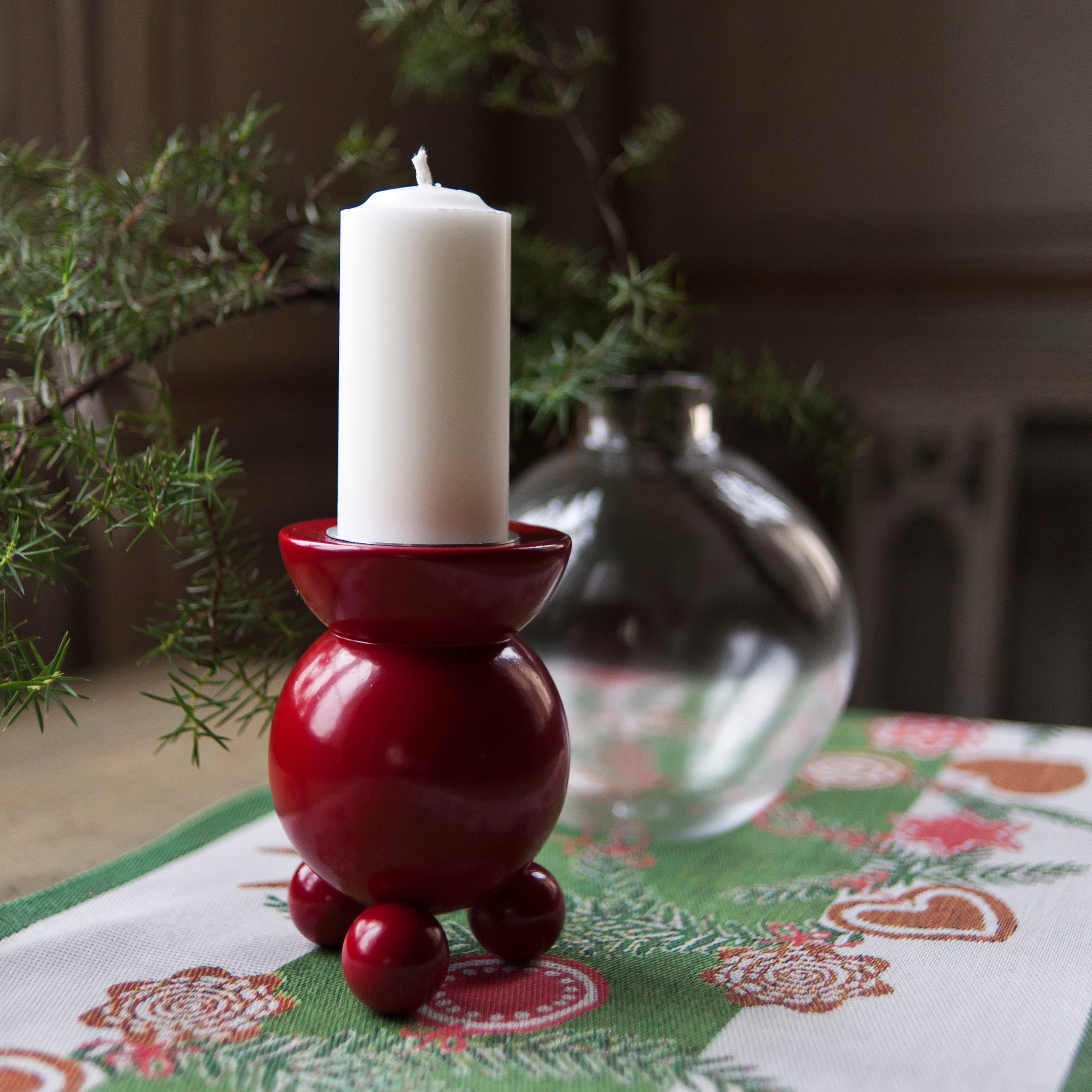 En riktig klassiker som är given som julpynt! Rödlackad träljusstake för ett gilleljus 50 mm. Tillverkad i Sverige. Gilleljus ingår ej. Bredd: 9 cm.