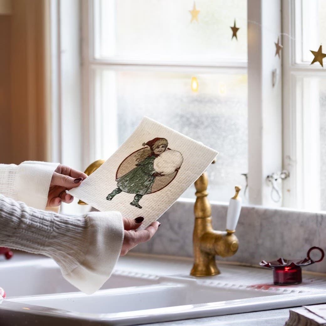 En svensktillverkad wettexduk i 70% cellulosa och 30% bomull, prydd med ett julmotiv som sprider lite extra glädje i köket. Den blir mjuk och absorberande när den blöts och håller för flitigt användande.