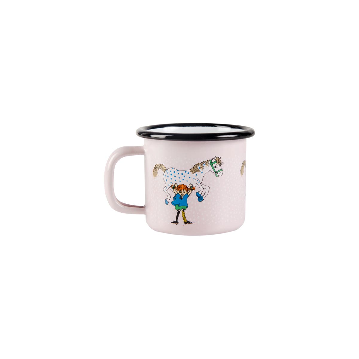 Pippi och Lilla Gubben emaljmugg från Muurla är en lekfull liten mugg, perfekt för de minsta. Den pryds av en färgglad illustration med Pippi Långstrump och hennes älskade häst Lilla Gubben.