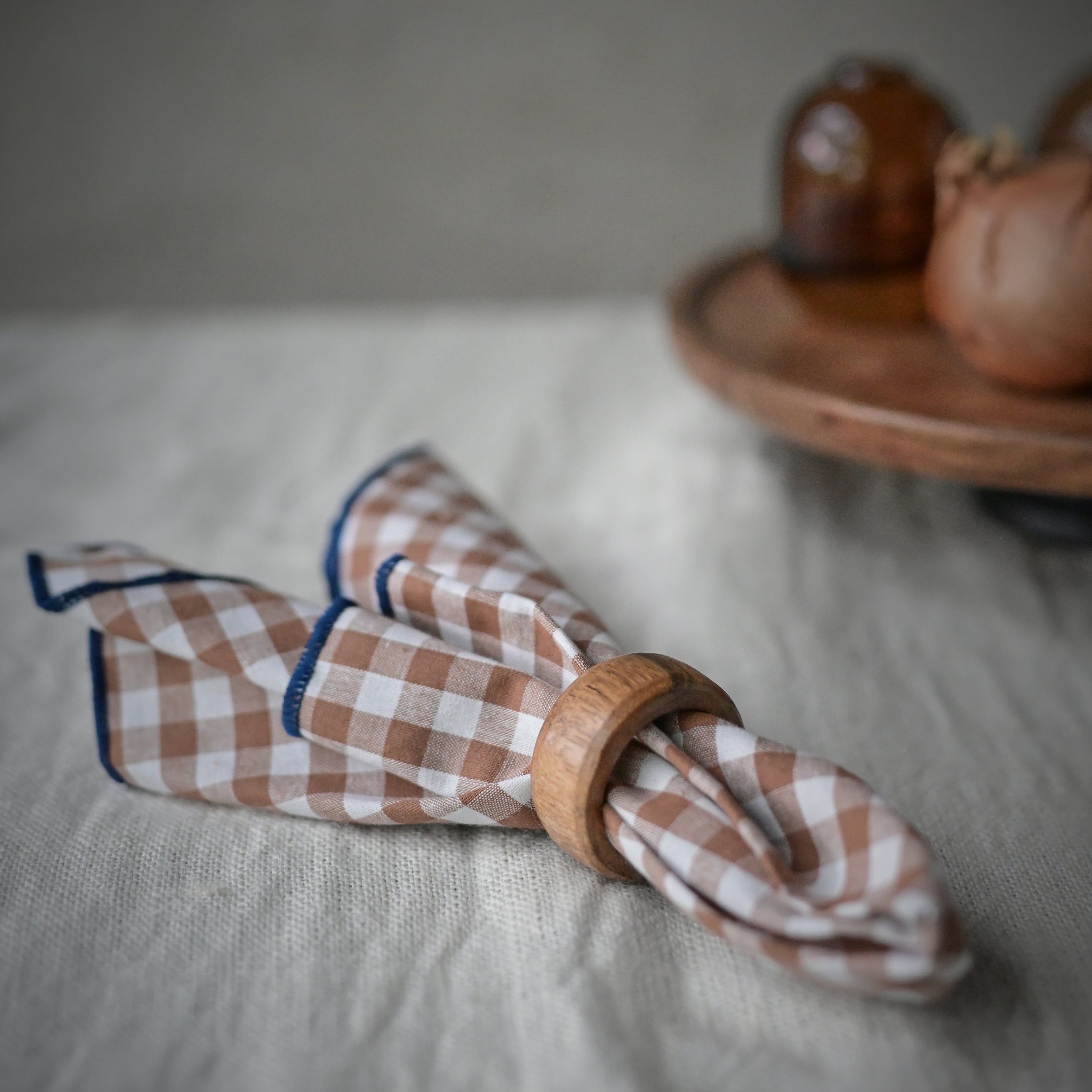 Servettring i trä som håller servetten på plats och ger en enkel, genomtänkt dukning. Fungerar fint tillsammans med både linne- och bomullsservetter. Passar lika bra till vardag som till fest.