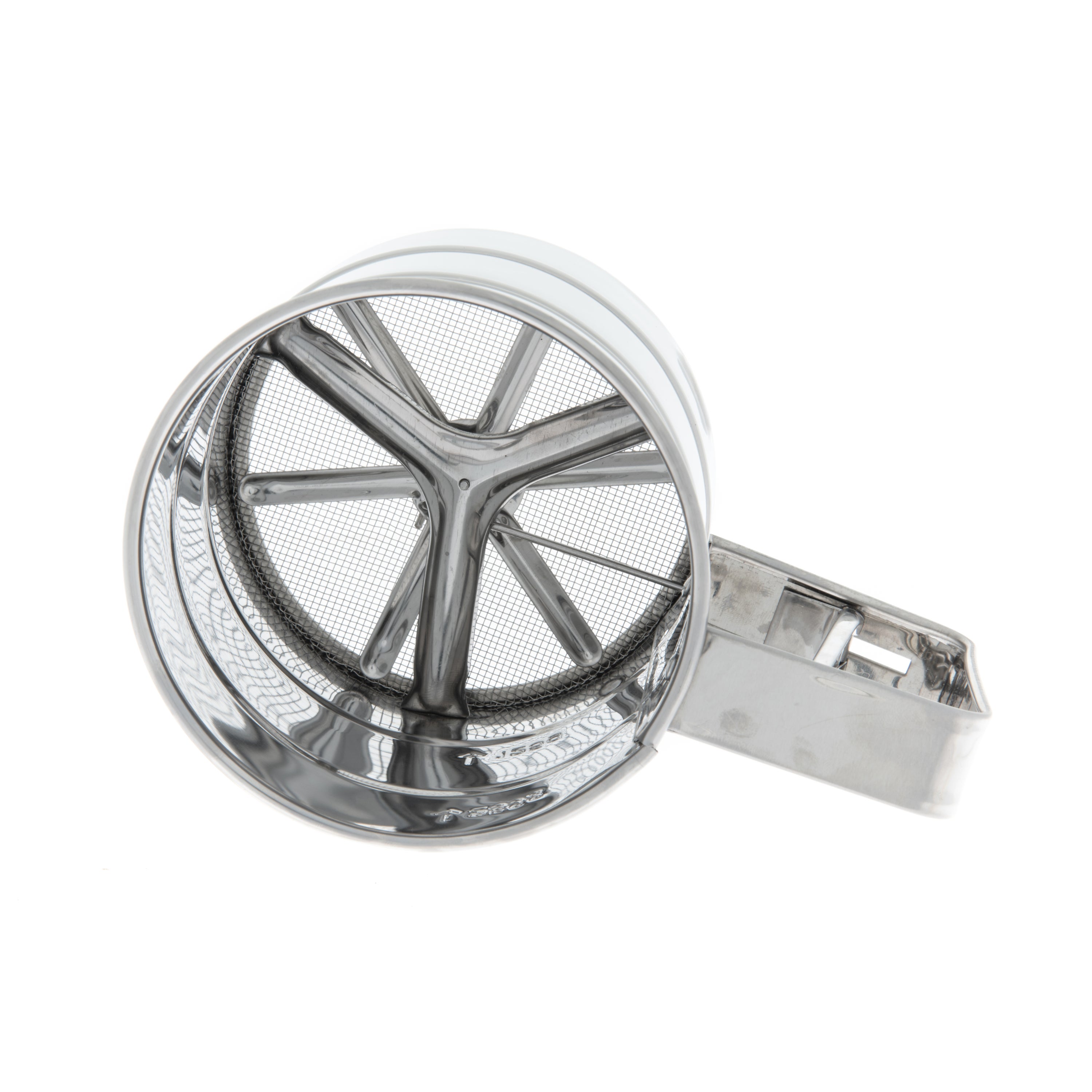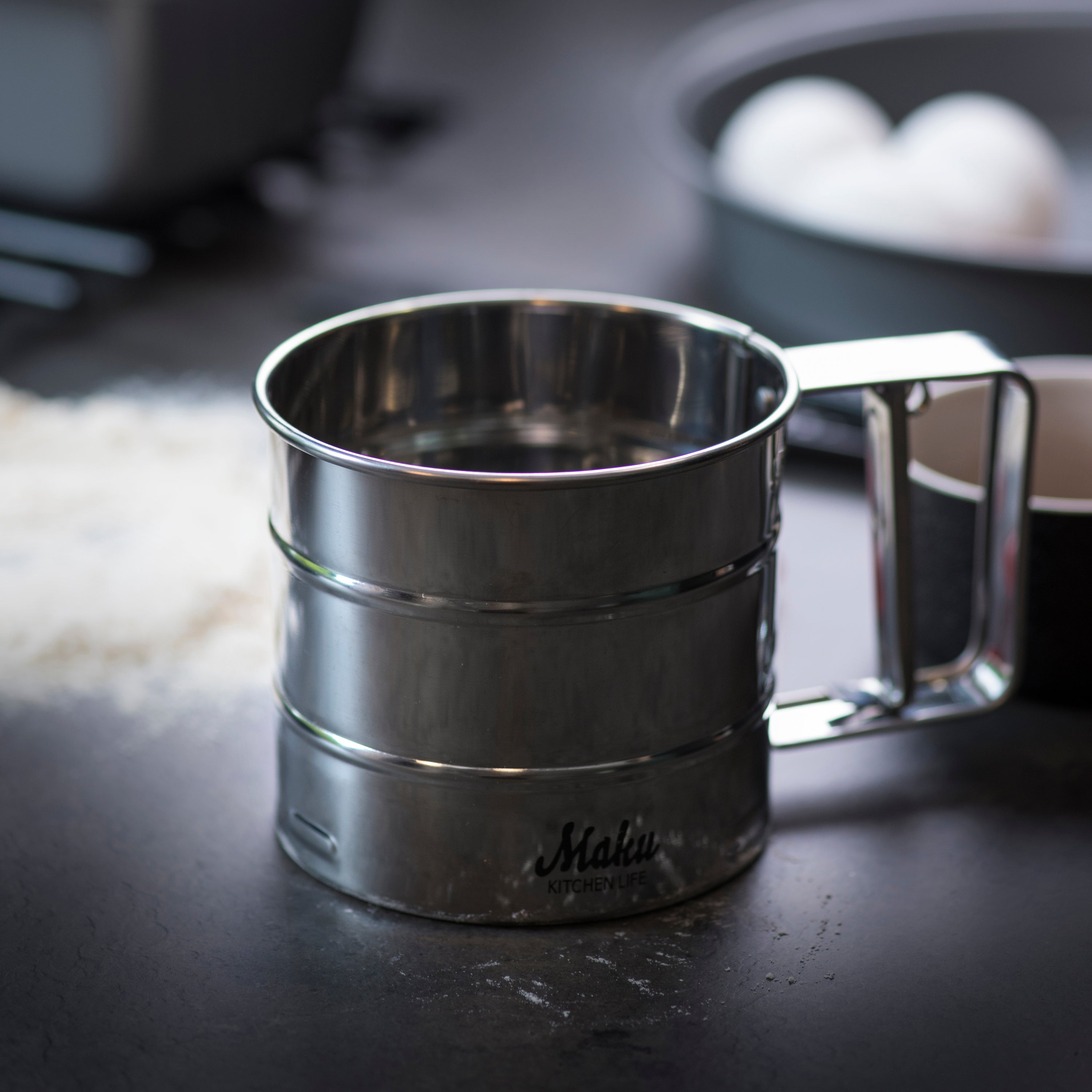 En mjölsikt i stål som snabbt blir din bästa vän i köket. Perfekt för mjöl, florsocker, kakao och vaniljsocker. När du siktar blir mjölet luftigare och klumparna försvinner, vilket ger fluffiga bullar och pannkakor med jämn smet. Den fungerar också utmärkt för att sila såser och puréer till en silkeslen konsistens. Fyll på och kläm ihop handtaget för ett jämnt och luftigt resultat varje gång.