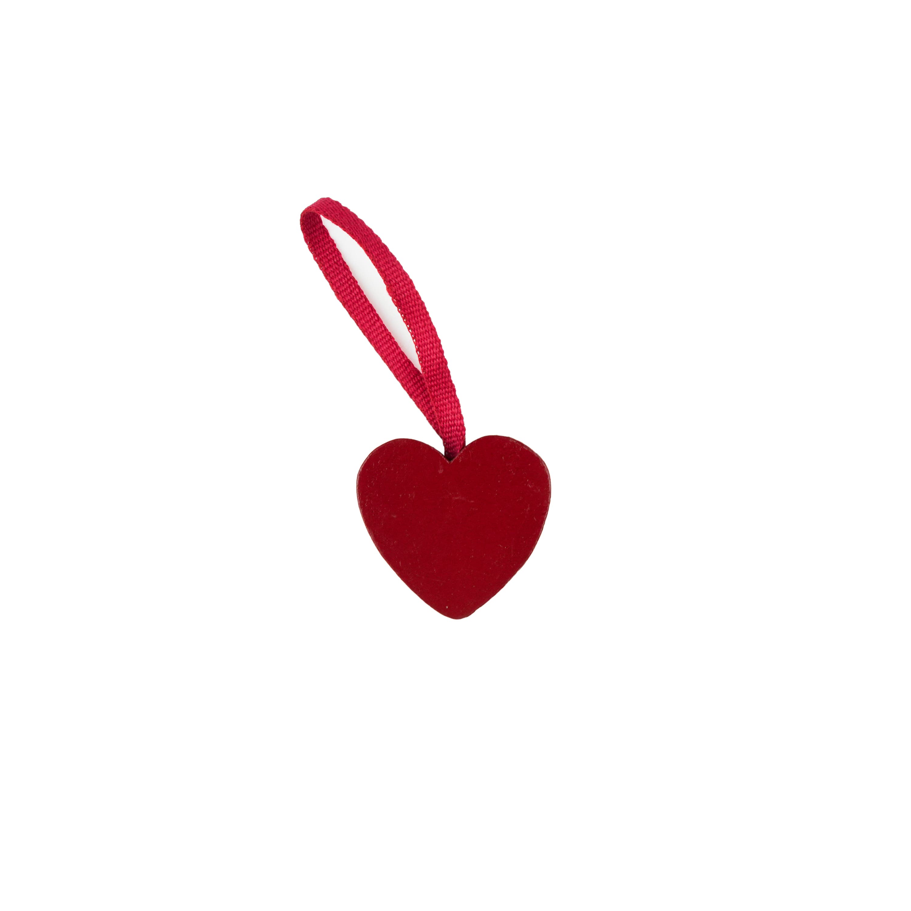 Rött lackat hänge i trä som finns i flera former: stjärna, hjärta, tomte, älg och gran. Passar fint i granen, på en kvist eller som en liten detalj på julklappen.
