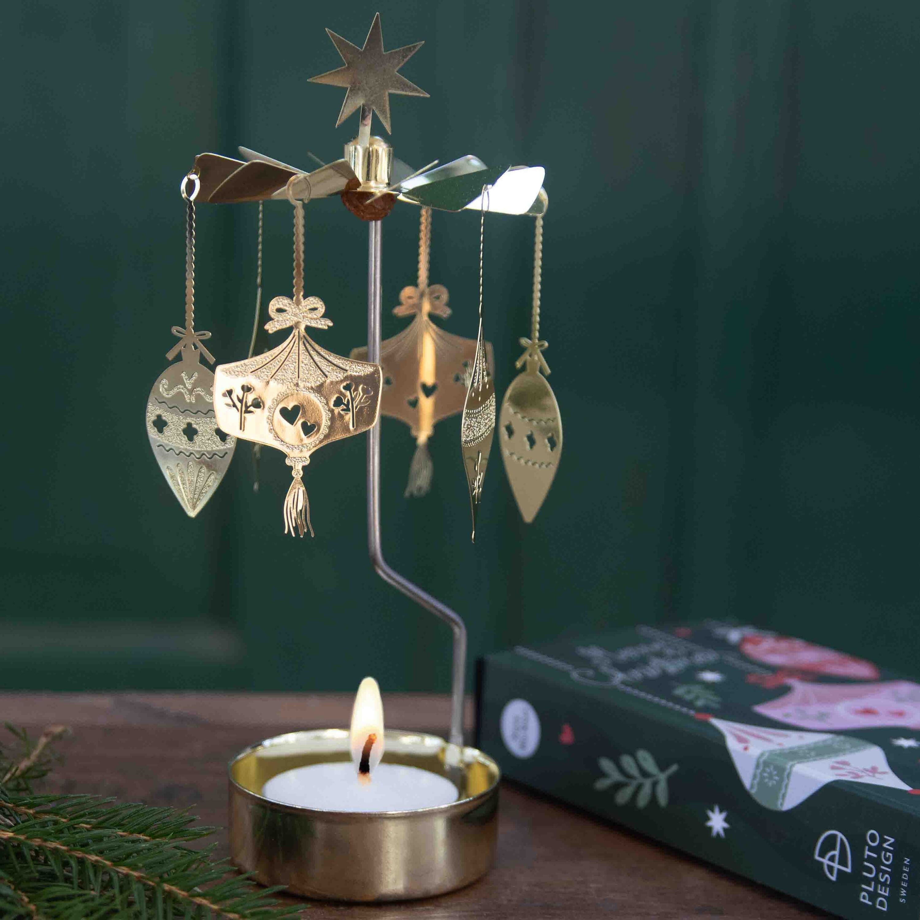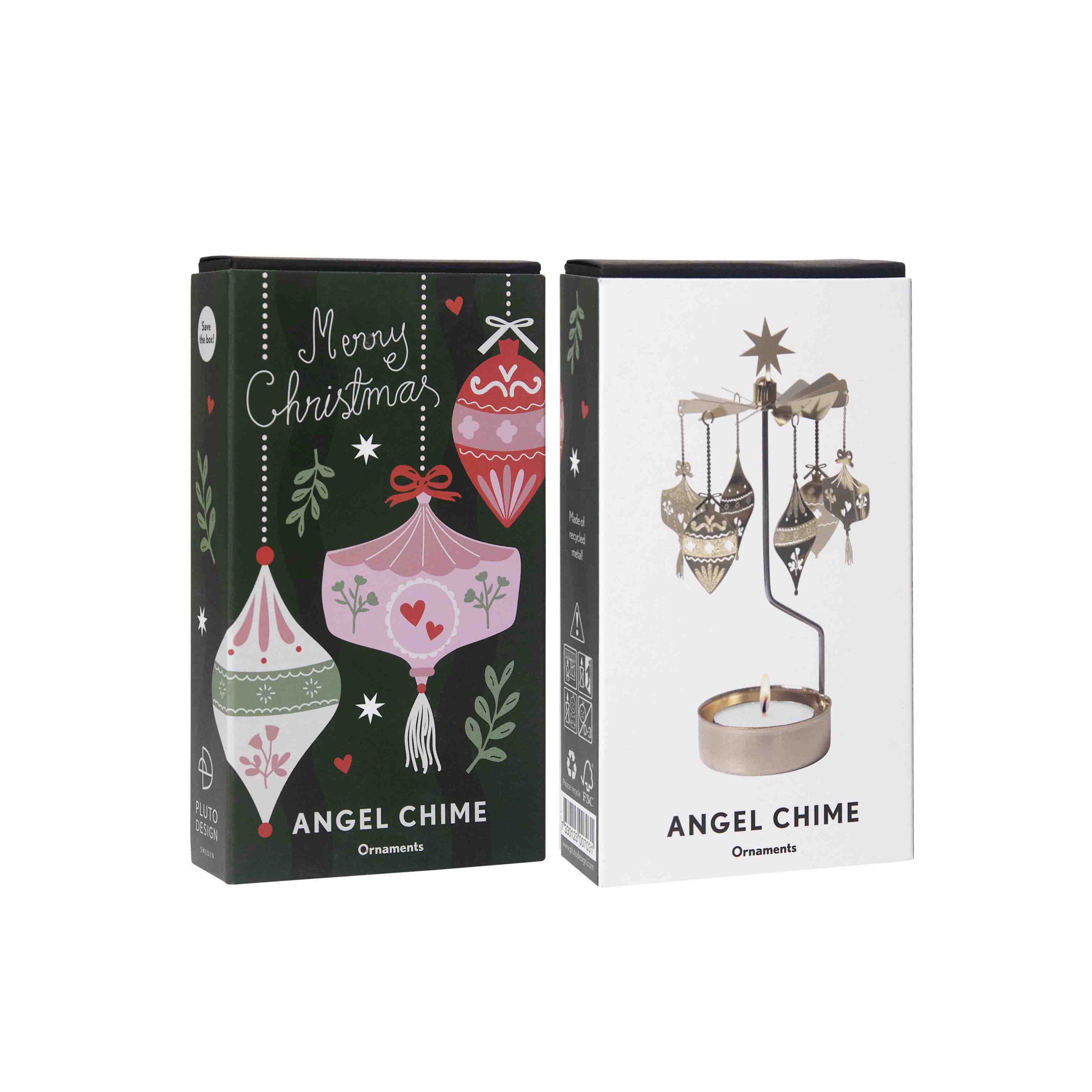 Änglaspelet Ornaments är ett klassiskt änglaspel där små julkulor snurrar sakta i värmen från lågan. En stämningsfull dekoration med en hint av retro, som sprider både ljus och rörelse i rummet. Passar lika fint på julbordet som på en hylla eller i fönstret.