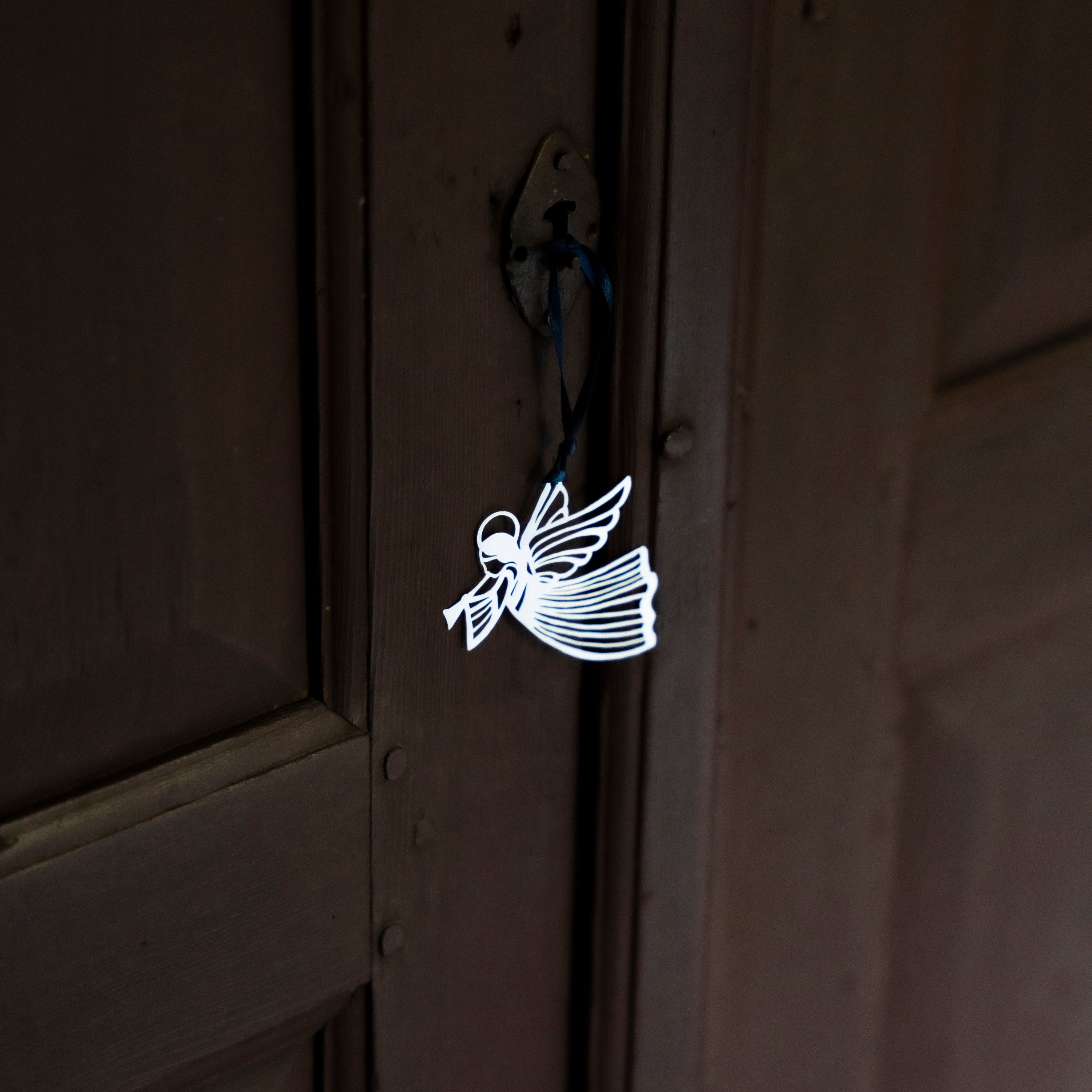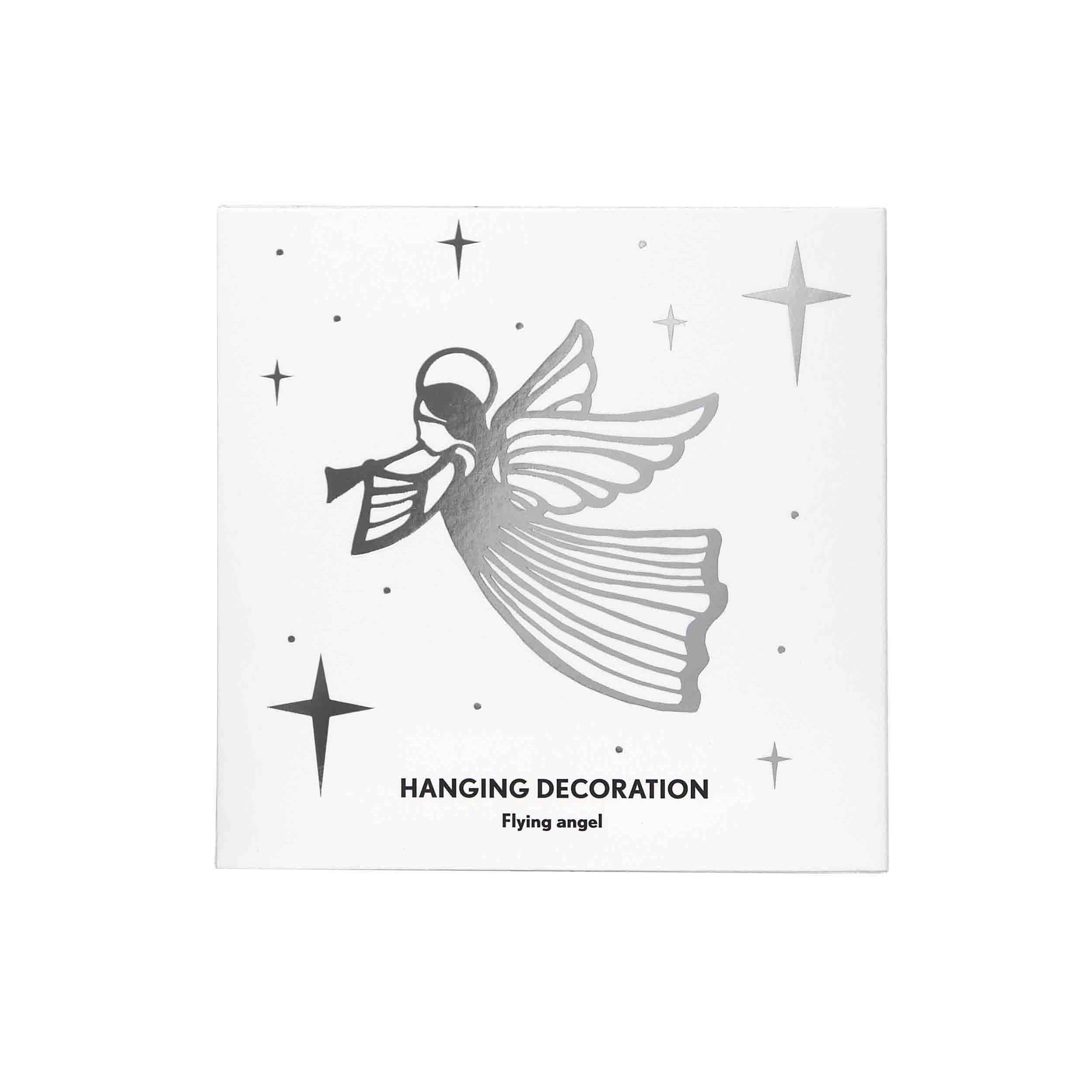 En flygande ängel i metall med vackra detaljer som fångar ljuset på ett stämningsfullt sätt. Häng den i fönstret eller låt den glimma i julgranen. Levereras i en enkel och fin förpackning, redo att hängas upp direkt eller ges bort till någon du tycker om. En tidlös dekoration som sprider glädje året om.