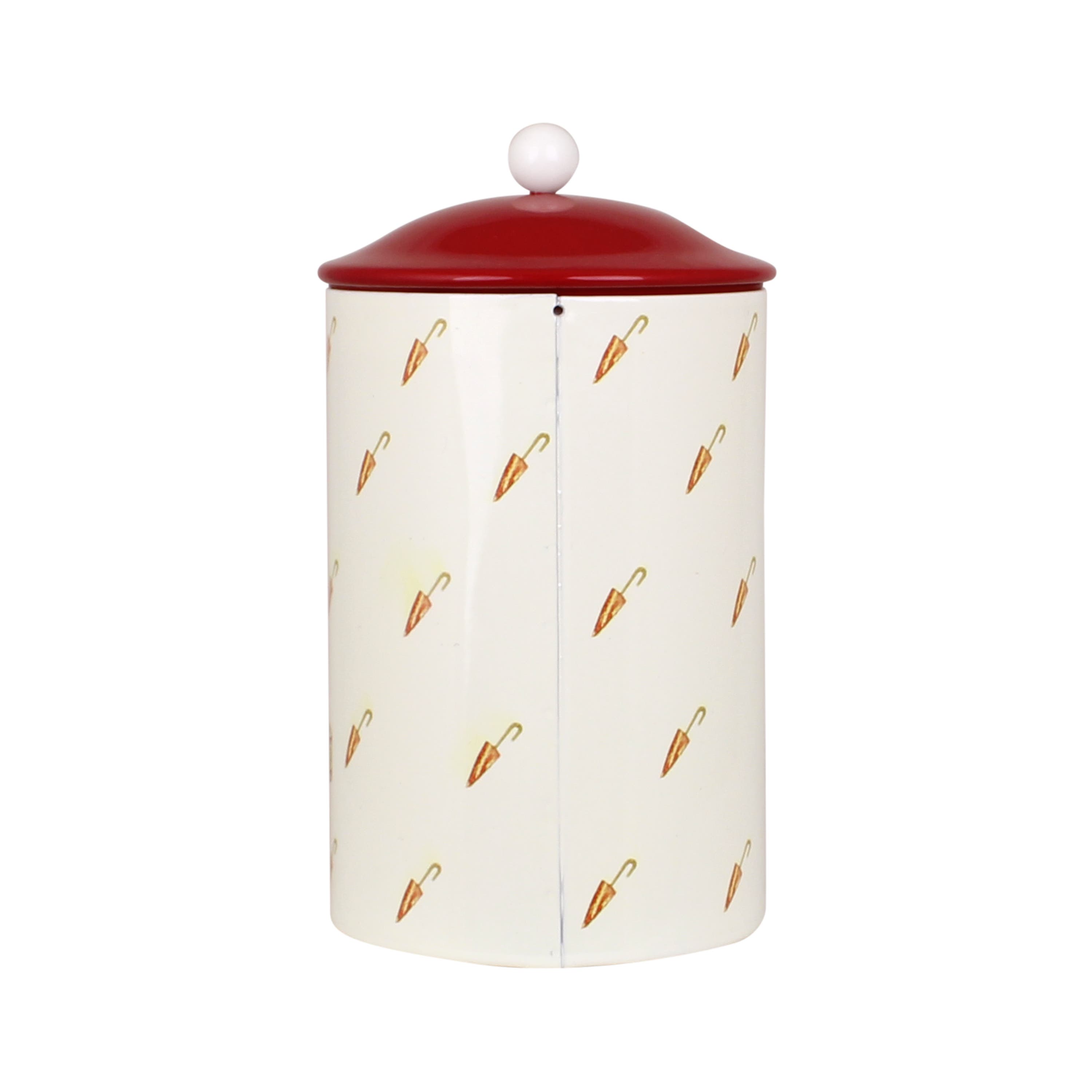 Plåtburk med nostalgiskt julmotiv, perfekt för att förvara julgodis. Det röda locket har en rund knopp och en silikonring som gör att det sluter tätt och håller innehållet fräscht längre. Varje burk är handgjord, vilket innebär att små olikheter och ojämnheter kan förekomma. Tål ej maskindisk.