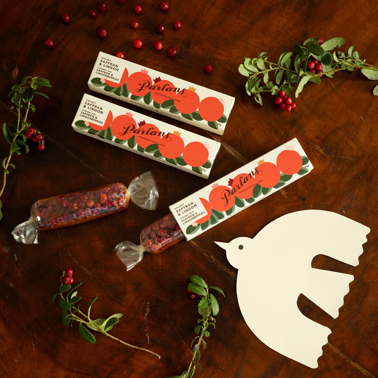 En större handinslagen kola från Pärlans där saffran möter syrliga lingon i en riktigt fin kombination. Den gräddiga saffranskola toppas med små lingon som ger både friskhet och balans i varje tugga. Perfekt att dela med någon du tycker om eller smyga upp ur fickan och njuta själv.